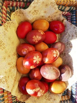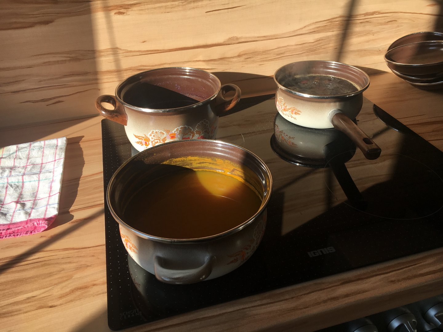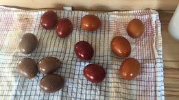 Seminarbäuerin Judith Lieschnegg Lichtenegger zeigte uns, wie man ganz einfach mit alltäglichen Lebensmitteln und auch mit Abfällen Eier einfärben kann. Auf unserer Zutatenliste standen Zwiebeln, Kurkumapulver, Kaffeesud, Rotkraut, Heidelbeeren, Malvenblütentee und rote Rüben. Diese Zutaten verliehen den Eiern eine schöne Farbe.