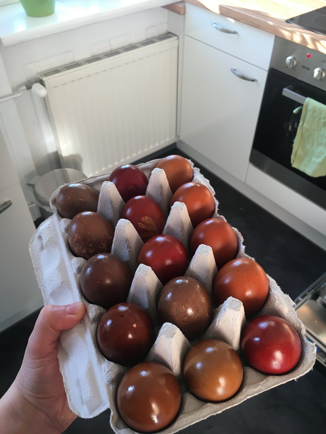 Am 9. April nahmen wir wieder vor unseren Bildschirmen in unseren vier Wänden Platz um beim Kreativkurs „Ostereier färben mit Naturmaterialien“ dabei zu sein.