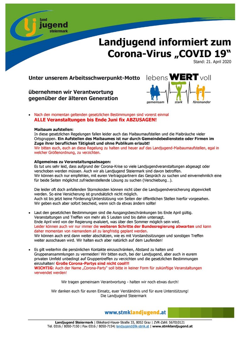 · Wir bitten euch, ALLE Landjugendveranstaltungen, egal in welcher Größe ABZUSAGEN!