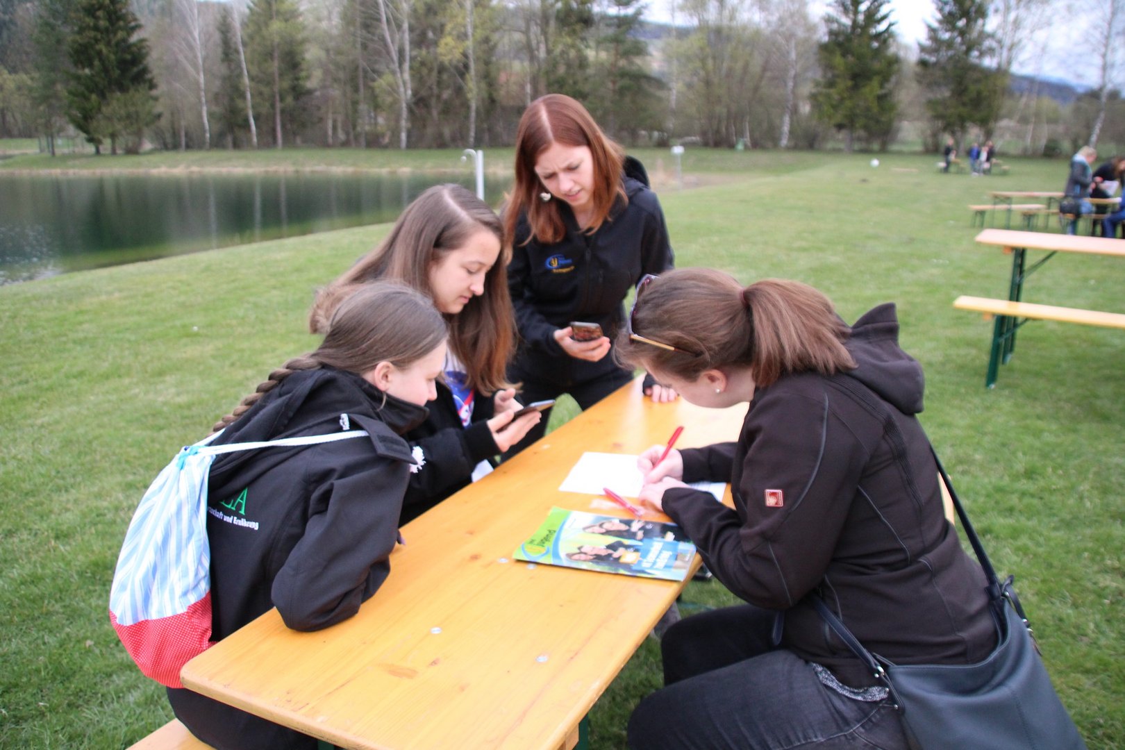 Rauchende Köpfe gab es auch dieses Jahr beim 4x4 Bezirksentscheid am 6. April. Heuer ging der Bewerb erstmalig am Schotterteich in Krieglach über die Bühne. Über das ganze Areal des Schotterteiches verteilt konnten die Teilnehmer ihr Wissen bei den verschiedenen Stationen testen. Auch eine kleine Labestation wurde vom Bezirksvorstand eingerichtet damit sich die Mitglieder stärken und neue Energie tanken konnten. Spannende und interessante Themen bildeten die Lerninhalte des Bewerbes. So erfuhren die Teilnehmer einiges über Wasser, Rückkehr der Beutegreifer, Steirische Trachten, Vietnam & Kambodscha, Abba, Abfalltrennung und Plastikvermeidung, Leonardo da Vinci und Medienverhalten – Netflix und Co. Natürlich kam auch heuer der Spaß nicht zu kurz und somit wurde auch wieder eine Fun-Station eingerichtet. Hierbei mussten sich die Teilnehmer gegenseitig „füttern“, einen Baumstamm durchsägen und ihr Wurfgeschick unter Beweis stellen. Die klügsten Köpfe wurden im Anschluss bei der Siegerehrung beglückwünscht. Besonders die Ortsgruppe Langenwang konnte hier glänzen und sicherte sich mit ihren Teams sowohl Platz 3 als auch den zweiten Rang. Das Ticket zum Landesentscheid holte sich ein Mixteam aus den Ortsgruppen Mürzzuschlag-Ganz und Langenwang mit den Teilnehmerinnen Andrea Hesele, Bettina Rinnhofer, Katharina Rinnhoferund Verena Rinnhofer! Wir gratulieren euch recht herzlich und wünschen euch viel Erfolg am 18. & 19. Mai in Stubenberg am See!