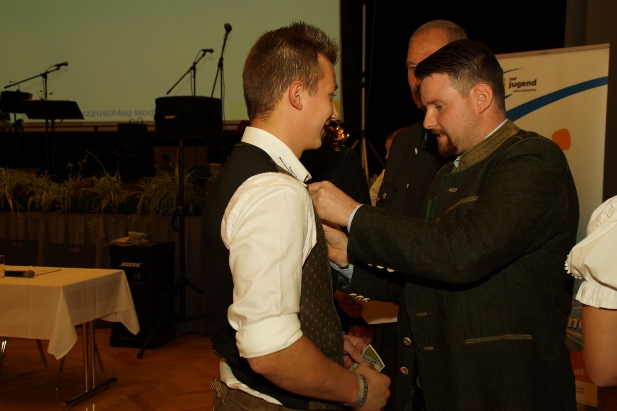 Am 21. Oktober war es wieder mal soweit! Die 68. Generalversammlung mit anschließendem Herbsttanz ging im VAZ Krieglach über die Bühne. Begrüßen durften wir einige Ehrengäste, Sponsoren, Eltern und zahlreiche Landjugendmitglieder sowohl vom Bezirk Mürzzuschlag als auch von diversen anderen Bezirken aus der ganzen Steiermark. Einer von vielen Tagesordnungspunkten war der spannende Tätigkeitsbericht, der den Veranstaltungssaal in ein Kino verwandelte. Mit Popcorn ausgestattet und voller Vorfreude und Spannung wurde auf die Leinwand geblickt um das letzte Jahr Revue passieren zu lassen. Ein weiterer Höhepunkt der Generalversammlung war sicherlich die Verleihung der zahlreichen Leistungsabzeichen in Bronze & Silber. 20 Landjugendmitglieder aus dem ganzen Bezirk zeigten Engagement, Motivation und Einsatz und dürfen sich nun stolze Besitzer eines Leistungsabzeichens nennen. Da eine Generalversammlung immer Veränderungen im Vorstand mit sich bringt, mussten wir uns leider von 6 Vorstandsmitgliedern verabschieden. Wir bedanken uns bei Patrick Hirschler, Michaela Hofbauer, Thomas Hofbauer, Bettina Pretterhofer und Eva Schöggl, die viele Jahre lang eine hervorragende Arbeit im Vorstand leisteten und wünschen ihnen alles Gute für die Zukunft! Besonders schwer fiel uns jedoch der Abschied von unserem Obmann Matthias Täubl, der uns fünf Jahre im Vorstand begleitete. Danke an dich, Lippi, für deinen unermüdlichen Einsatz, deine Motivation und deine liebenswerte und humorvolle Art, die uns jeden Tag ein Lächeln ins Gesicht zauberte. Der neue Vorstand musste sich erst einem Bewerbungsgespräch unterziehen und sich unter den kritischen Augen der Leiterin und des Obmanns beweisen. Da sich alle von ihrer besten Seite zeigten und nur die besten Kompetenzen aufweisen konnten, wurden sie im neuen Vorstand aufgenommen. Neu hinzugekommen sind Julia Fladenhofer (Schriftführerin), Julia Paar (Kassierin Stv.) und Verena Rinnhofer (Medienreferentin). Natürlich wünschen wir allen Mitgliedern des ganzen Vorstandes, besonders aber Hannes Lechner, der die Position des Obmanns eingenommen hat, viel Erfolg im neuen Landjugendjahr! Den gesamten Vorstand findet ihr hier: https://muerzzuschlag.landjugend.at/kontakt/vorstand Für die musikalische Umrahmung der Generalversammlung sorgten Tanja und Patrick Lechner aus der Ortsgruppe Kindberg. Danke euch beiden! Im Anschluss an die 68. Generalversammlung wurde der Herbsttanz mit einer Polonaise der Ortsgruppe Stanz eröffnet. Danach unterhielt „Das Ganzstein Echo“ die Gäste im großen Saal und sorgte für einen gelungenen Tanzabend. In der Disco brachte derweil „Delta“ und DJ Florian Czerny die Hütte zum Beben! Weitere Highlights des Herbsttanzes waren das Schätzspiel und die zahlreichen Herzalfotos! Ein großes Dankeschön gilt all unseren Besuchern und Mitgliedern! Ohne euch wäre dieser Abend nie so gelungen verlaufen!