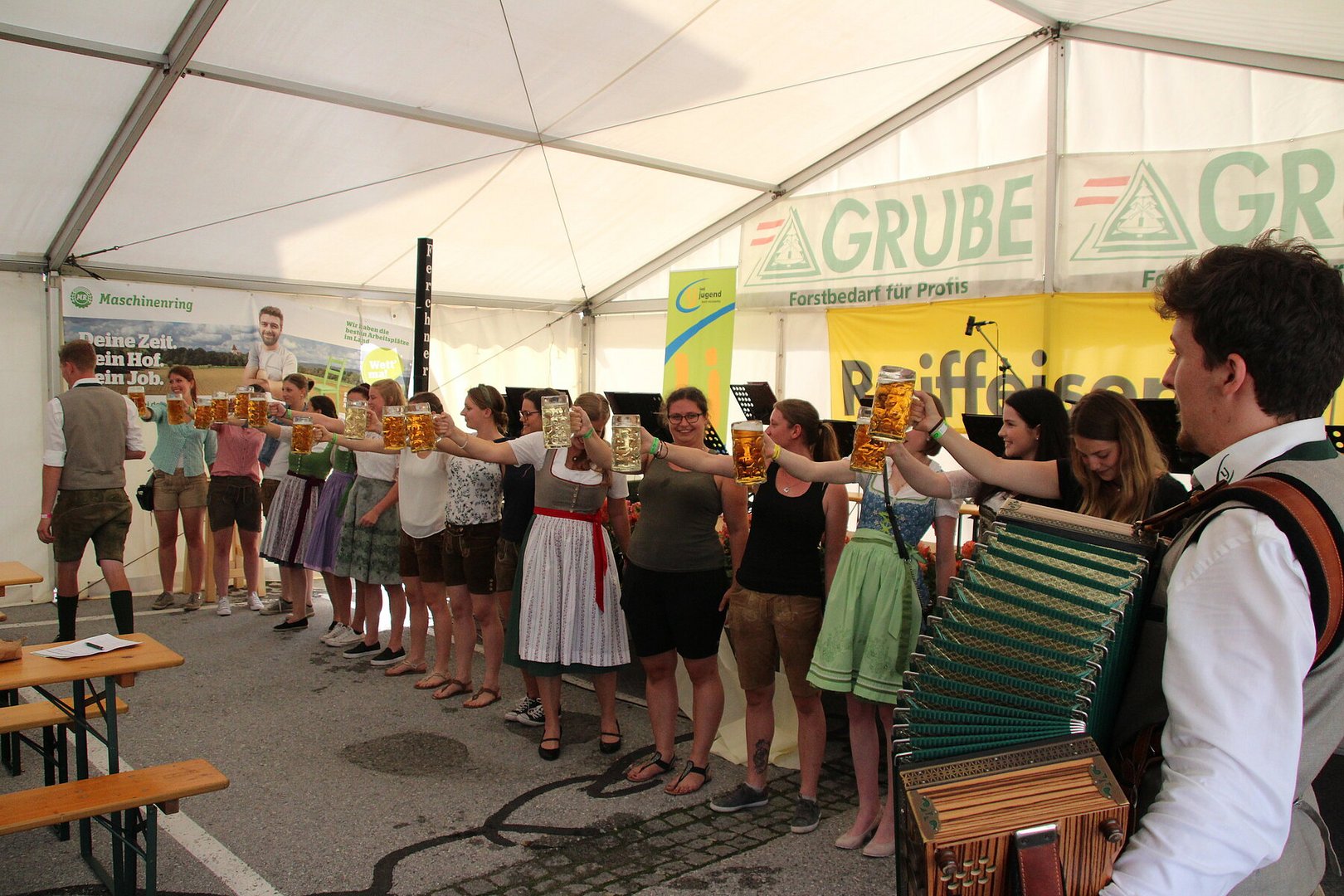 Klassisch, wie es sich gehört, wurde von unserem Obmann Hannes und unserer Leiterin Eva der Bieranstich durchgeführt - welcher (überraschenderweise) gut gelungen ist! Um dem Frühshoppen-Feeling gerecht zu werden, wurde der Nachmittag mit einem Maßkrugstemmen abgerundet Ordentlich Stimmung wurde dabei von „Werners Dorfmusik“ gemacht! Auch super Preise durften beim Schätzspiel und der Verlosung nicht fehlen Somit wurde eine Stihl 362 Motorsäge an den Gewinner übergeben! Wir gratulieren dem Gewinner