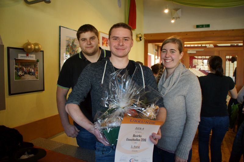 Am 10. Dezember fand wieder das alljährliche Bezirkseisschießen auf der Kunsteisanlage in Langenwang statt. Bei herrlichem Wetter kämpften 16 Mannschaften aus fünf Ortsgruppen um die Qualifikation für das Landeseisschießen bzw. um die heißbegehrte Riesenbreze, gesponsert von der Bäckerei Rothwangl aus Krieglach. Im Finale setzte sich "Krieglach 1" mit Thomas Hofbauer, Nino Spreitzhofer, Dominik Leitner und Christoph Jell gegen "Langenwang 1" mit Manuel Paller, Martin Hofbauer, Walter Magritzer und Hannes Tangl durch. Auf den dritten Platz schaffte es "AKN 4" (Michael Schrittwieser, Alexander Gruber, Christian Pernhofer und Peter Paier).