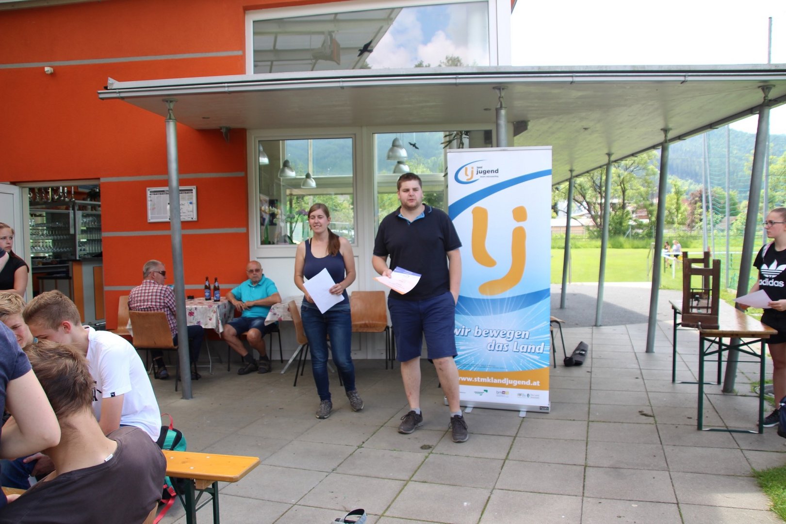 Bei den Bezirkssommerspielen 2018 ging es auch heuer wieder sportlich zu! Am 26. & 27. Mai trafen sich zahlreiche motivierte Landjugendmitglieder um in verschiedenen Disziplinen ihr Können unter Beweis zu stellen. Am Samstag in der Früh starteten die Sommerspiele in Langenwang mit der Disziplin Fußball. Spannende Matches standen am Programm, wo sich schlussendlich die Ortsgruppe Stanz, vor Krieglach und einer weiteren Mannschaft aus der Stanz durchsetzen konnte. Auch die Torschützenwertung konnten die Mädels und Burschen aus der Stanz für sich entscheiden. Im Anschluss machten sich einige Teilnehmer bereit für den nächsten Bewerb und starteten zu der geplanten Radtour. Alle Radler glänzten mit einer tollen Leistung und fuhren schon nach wenigen Minuten wieder ins Ziel. Bei den Burschen siegte Gerhard Rinnhofer (OG Langenwang), Platz 2 ging an Andreas Hofbauer (OG Langenwang) und Fabian Kahr (OG Stanz) sicherte sich den 3. Rang. Bei den Mädels gab es einen Doppelsieg, denn Anna Fladenhofer (OG Langenwang) und Eva Rinnhofer (OG Langenwang) fuhren gemeinsam über die Ziellinie. Den dritten Platz belegte Andrea Reisinger (OG Langenwang). Gestärkt durch ein schmackhaftes Mittagessen ging es weiter mit dem Bewerb Völkerball, der in der Turnhalle in Langenwang ausgetragen wurde. Hierbei belegte die Mannschaft aus Krieglach den dritten Platz. In einem spannenden Finale setzte sich am Ende das Team aus Langenwang durch und konnte sich vor den Teilnehmern aus der Stanz den 1. Platz sichern. Am darauffolgenden Tag ging es früh morgens im Gewerbepark Hönigsberg mit dem 1.000 Meter-Lauf los. Im Anschluss erfolgte ein Ortswechsel und die nächsten Disziplinen, wie der Dreikampf und der Sprinttriathlon, gingen am VIVAX-Sportplatz in Mürzzuschlag über die Bühne. Den Abschluss der diesjährigen Bezirkssommerspiele bildete ein Volleyballmatch zwischen den einzelnen Mannschaften. Das Team aus der Ortsgruppe Stanz konnte den 1. Rang belegen, Langenwang spielte sich auf Platz 2 und weitere Mädels und Burschen aus der Stanz holten sich die Bronze-Medaille. Aufgrund der fantastischen Leistungen konnten die einzelnen Ortsgruppen viele Punkte für die Mannschaftswertung sammeln. Die Ortsgruppe Langenwang holte sich den Sieg, gefolgt von Stanz und Krieglach. Vielen Dank an alle, die dabei waren! Neben einer schönen Zeit und viel Spaß, standen natürlich auch die sensationellen Leistungen im Vordergrund, zu denen wir herzlich gratulieren! Nicht vergessen: am 23. & 24. Juni finden wieder die Landessommerspiele in Schielleiten statt! Seid’s dabei!