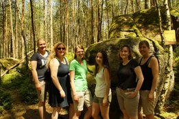 Das verlängerte Wochenende zu Christi Himmelfahrt nutzte der Bezirksvorstand, um das Waldviertel in Niederösterreich etwas näher kennen zu lernen. Die erste Station war die WeinErlebnisWelt LOISIUM in Langenlois. Dort durften wir auf ganz spezielle Art und Weise die Geschichte des Weinbaus in Langenlois kennen lernen. Im Anschluss fuhren wir weiter nach Langschlag, wo wir in netter Umgebung unser Quartier im Waldviertler Hof bezogen. Am nächsten Tag ging es nach Sprögnitz zu Sonnentor und erfuhren so einiges über die Herstellung von Bio-Tees, Bio-Gewürze und sonstige Leckereien und der Tee-Vorrat von so manchem Vorstandsmitglied wurde auch wieder ordentlich aufgestockt ;-) Quasi auf dem Rückweg lag auch die Stadtgemeinde Zwettl, die wir mit einem kleinen Spaziergang ebenfalls etwas näher erkundeten. Am Samstag war dann eine kleine Wanderung angesagt. Zuerst bewältigten wir einen Teil des Steinwanderwegs, wo wir dann direkt zur Bison Ranch der Familie Baumgartner weiter marschierten. Nach einer kleinen Stärkung beim Heurigen dort, wo wir auch Bison Fleisch probieren konnten, ging es wieder zurück ins Quartier. Bei der Heimreise legten wir noch einen Zwischenstopp beim Karmel Mayerling, dem ehemaligen Jagdschloss des Kronprinzen Rudolph, ein. Alles in allem war es ein sehr interessanter Ausflug in eine Gegend, die es definitiv wert ist mal genauer kennen zu lernen. :-)