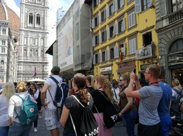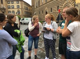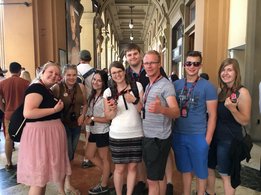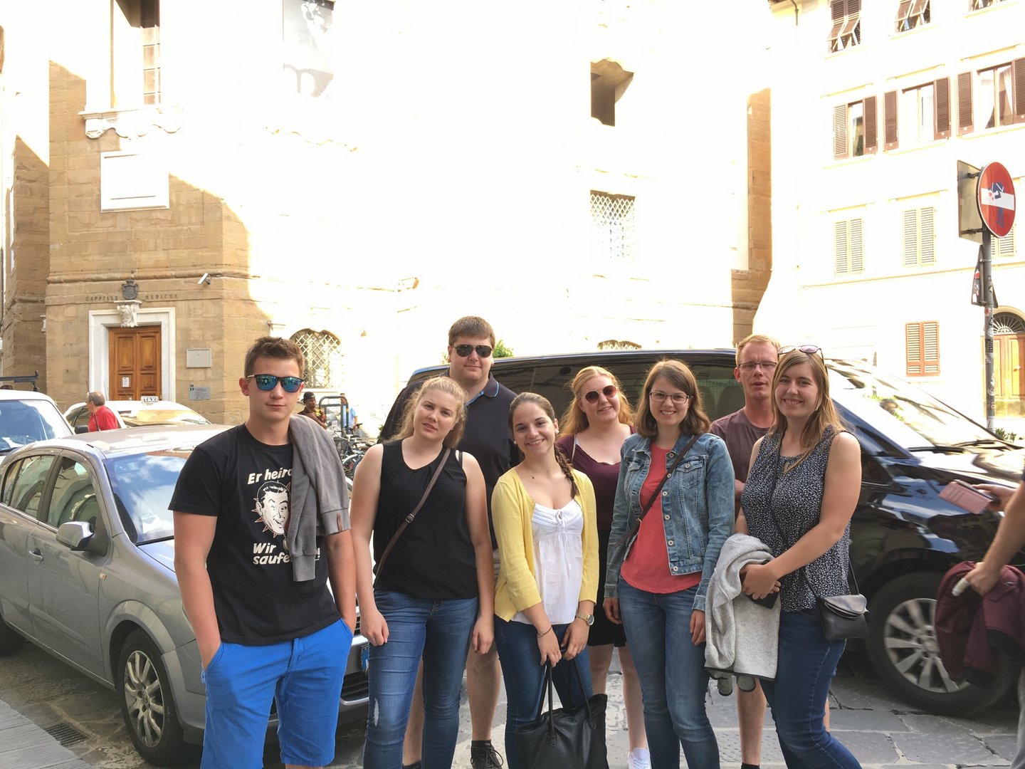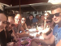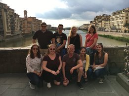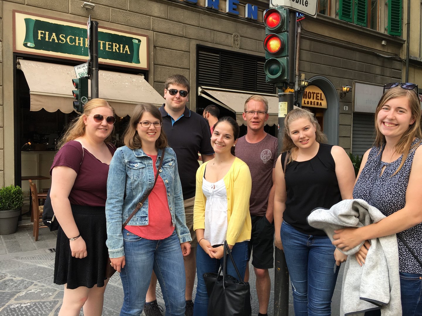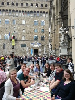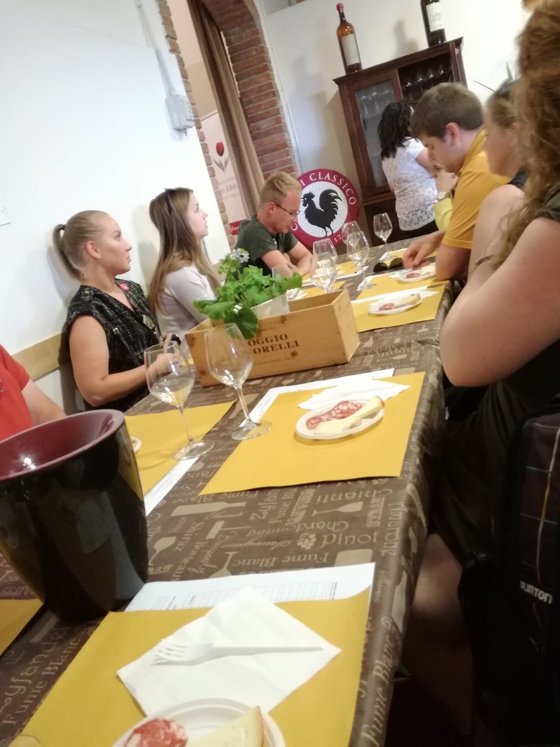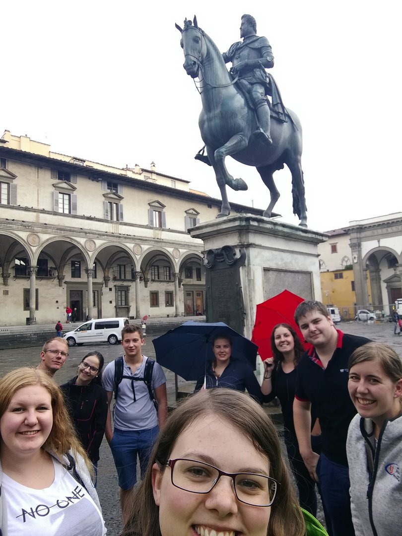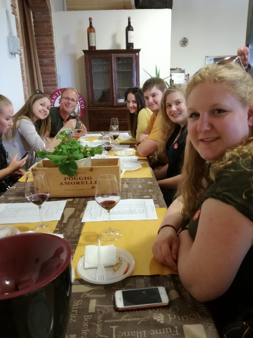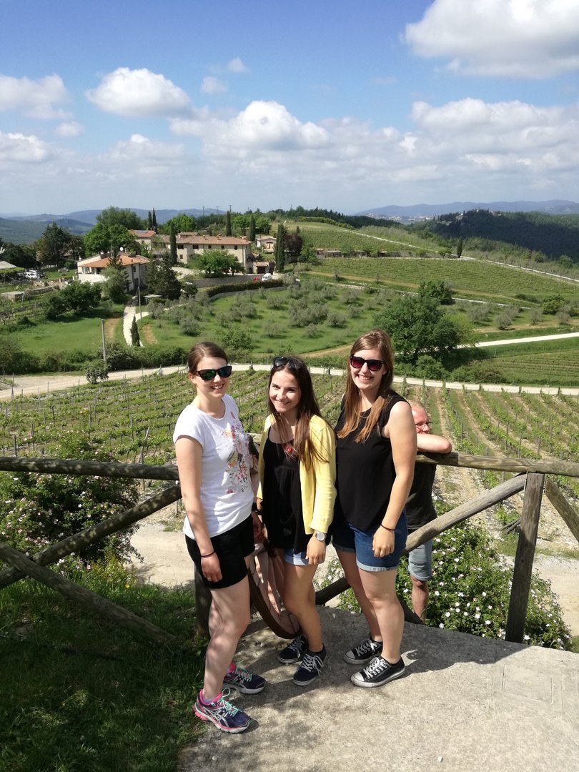 Am verlängerten Wochenende zu Christi Himmelfahrt durfte sich der Bezirksvorstand auf eine ganz besondere Reise begeben. Der diesjährige BV-Ausflug führte uns nämlich in das schöne Nachbarland Italien. Genauer gesagt verschlug es uns in die Toskana, nach Florenz. Mittwoch am Abend startete unsere Reise mit einer längeren Zugfahrt, bei der wir vor lauter Aufregung fast vergessen haben, zu schlafen. Am Donnerstag in der Früh kamen wir dennoch alle putzmunter und fit in Florenz an, wo wir uns erstmal ein ausgiebiges Frühstück gönnten. Satt und gestärkt, waren wir nun bereit die Stadt zu erkunden. Ponte Vecchio, Palazzo Vecchio, die Kathedrale Santa Maria del Fiore, Bargello und die Uffizien waren einige der vielen Sehenswürdigkeiten, die wir erkundeten. Den Tag ließen wir dann in gemütlicher Runde bei einem guten Glas Rotwein und einem schmackhaften Essen ausklingen. Am folgenden Tag war ein geführter Stadtrundgang durch Florenz geplant. Hierbei lernten wir so einiges über die Familie Medici, die im 15. und 16. Jahrhundert die Stadt Florenz prägte. Wir erhielten auch Informationen über bekannte Persönlichkeiten wie Michelangelo, Machiavelli, Leonardo da Vinci und Galileo Galilei, die sich in der Renaissance in Florenz ansiedelten. Das Highlight unseres Ausfluges stand am Samstag am Programm. Im Anschluss an das Aufwecken unseres Geburtstagskindes Berni, starteten wir zu Mittag zu einer Weinverkostung. Mit einer Reisegruppe fuhren wir in die Region Chianti, einem Weinbaugebiet im Zentrum der Toskana, in dem schon seit Jahrhunderten der Chianti-Wein erzeugt wird. Unser erster Stopp war der Ort Castellina in Chianti im Nordosten der Toskana. Hier erfuhren wir einiges über die Ernte, Produktion und Lagerung des Chianti-Weines. Nach einer sehr interessanten Führung durch das Weingut Poggio Amorelli durften wir vieles über ausgewählte Weine und deren Geschmack lernen und diese zudem auch verkosten. Bevor es zum nächsten Weingut ging, hatten wir noch etwas Freizeit um die Stadt Castellina zu erkunden. Die zweite Weinverkostung fand am südöstlichen Rand von Florenz, im Ort Greve in Chianti, statt. Auch hier, am Weingut Tenuta Riseccoli, hatten wir wieder die Möglichkeit eigens produzierte Weine zu verkosten und im Anschluss die Stadt zu besichtigen. Am Ende des Tages waren wir auf jeden Fall reicher, sowohl an interessanten Informationen, als auch an ausgewählten Weinflaschen in unserem Rucksack. Am Sonntag, der leider schon unser letzter Tag war, traten wir die lange Heimreise an. Durch diesen Ausflug haben wir eine wunderschöne Region, Kultur und Sprache kennenlernen dürfen und nehmen auf alle Fälle viel Neues mit! Auch wenn der eine oder andere trotz vieler Bemühungen der italienischen Sprache nicht sehr zugewandt war, konnte man immer auf die Freundlichkeit und Zuvorkommenheit der Italiener hoffen. Deshalb war es auch kein Problem mit „I kriagat bittschei a Roastbeef“ zu bestellen. Zudem hat uns diese Reise enger zusammengeschweißt und die bestehenden Freundschaften konnten gestärkt werden. Somit sind wir natürlich weiterhin top motiviert die Arbeit als Bezirksvorstand übernehmen zu dürfen und freuen uns schon auf weitere zahlreiche Veranstaltungen! Jetzt bleibt nur noch zu sagen: Grazie mille Italia! Ci siamo divertiti molto. Torneremo!