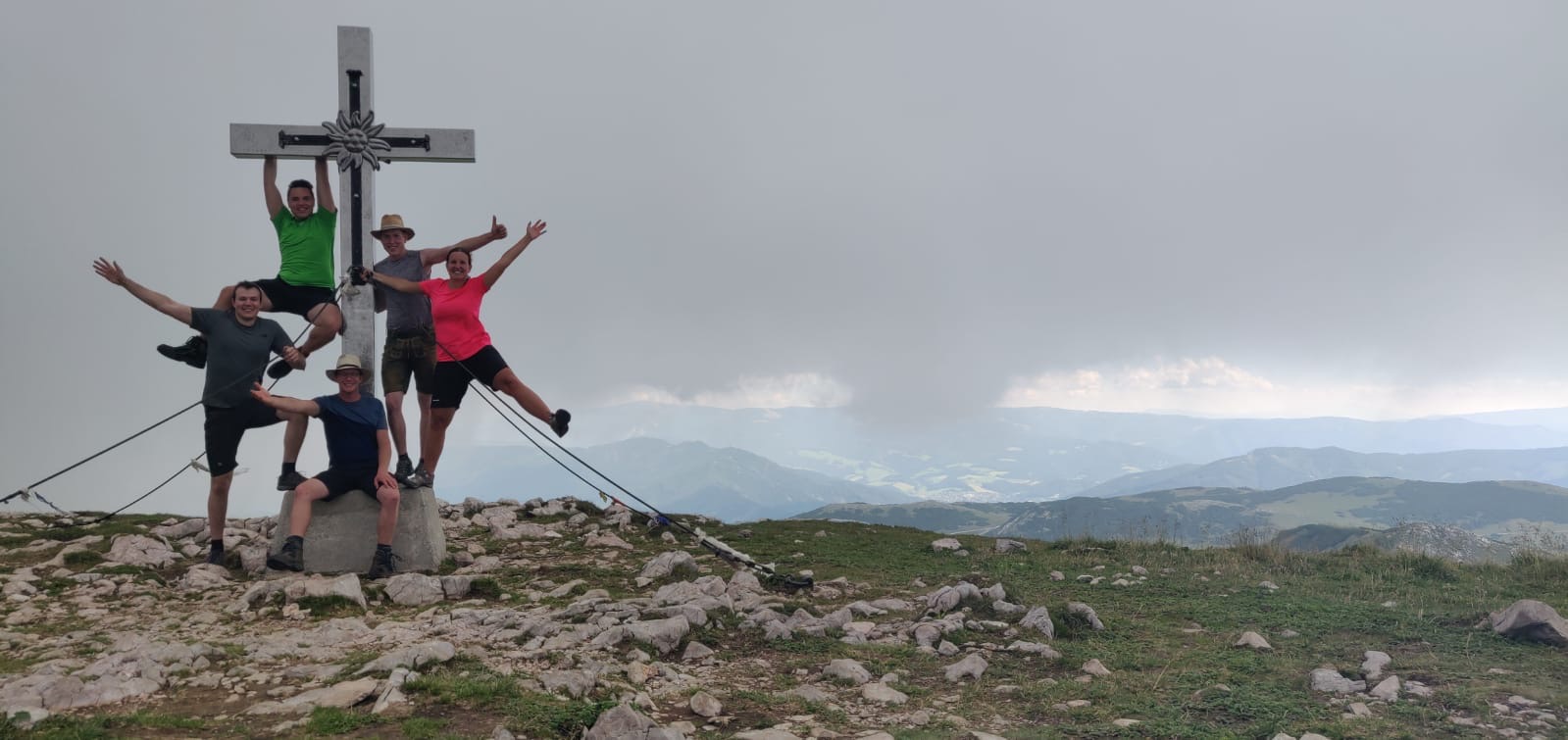 Am nächsten Tag ging’s sportlich weiter. Dieses Mal bestiegen wir als komplette Gruppe den Windberg und genossen die schöne Aussicht. Nach einem stärkenden Mittagessen am Schneealpenhaus traten wir wieder den Rückweg an.