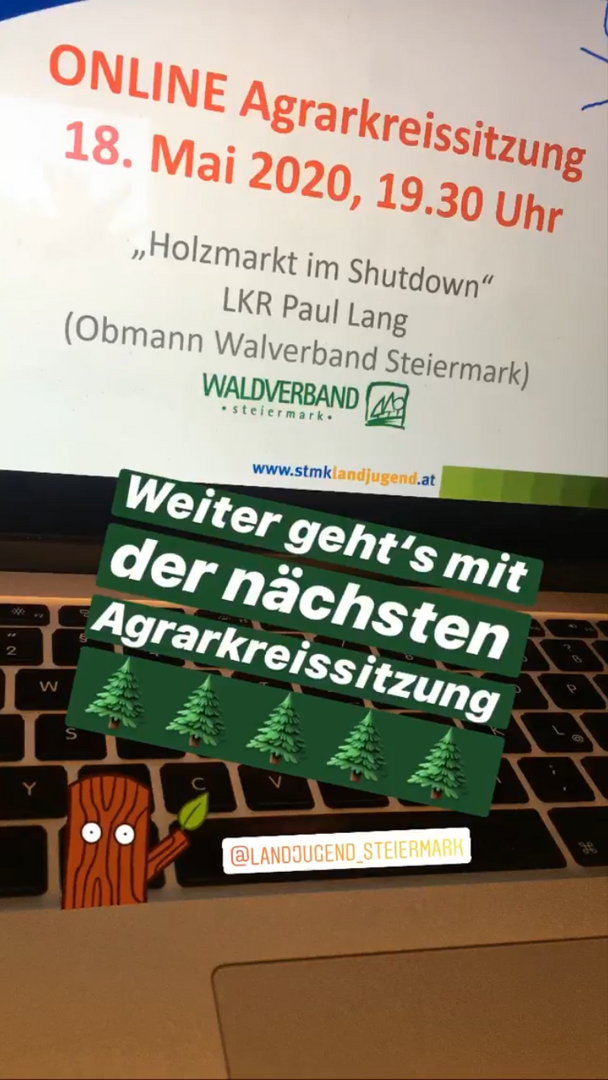 Eine weitere Agrarkreissitzung, die wir uns natürlich nicht entgehen ließen! Am 18. Mai bereitete der Obmann des Waldverbandes Steiermark LKR Paul Lang das Thema „Holzmarkt im Shutdown“ bestens für uns auf!