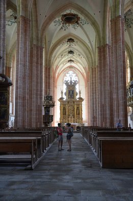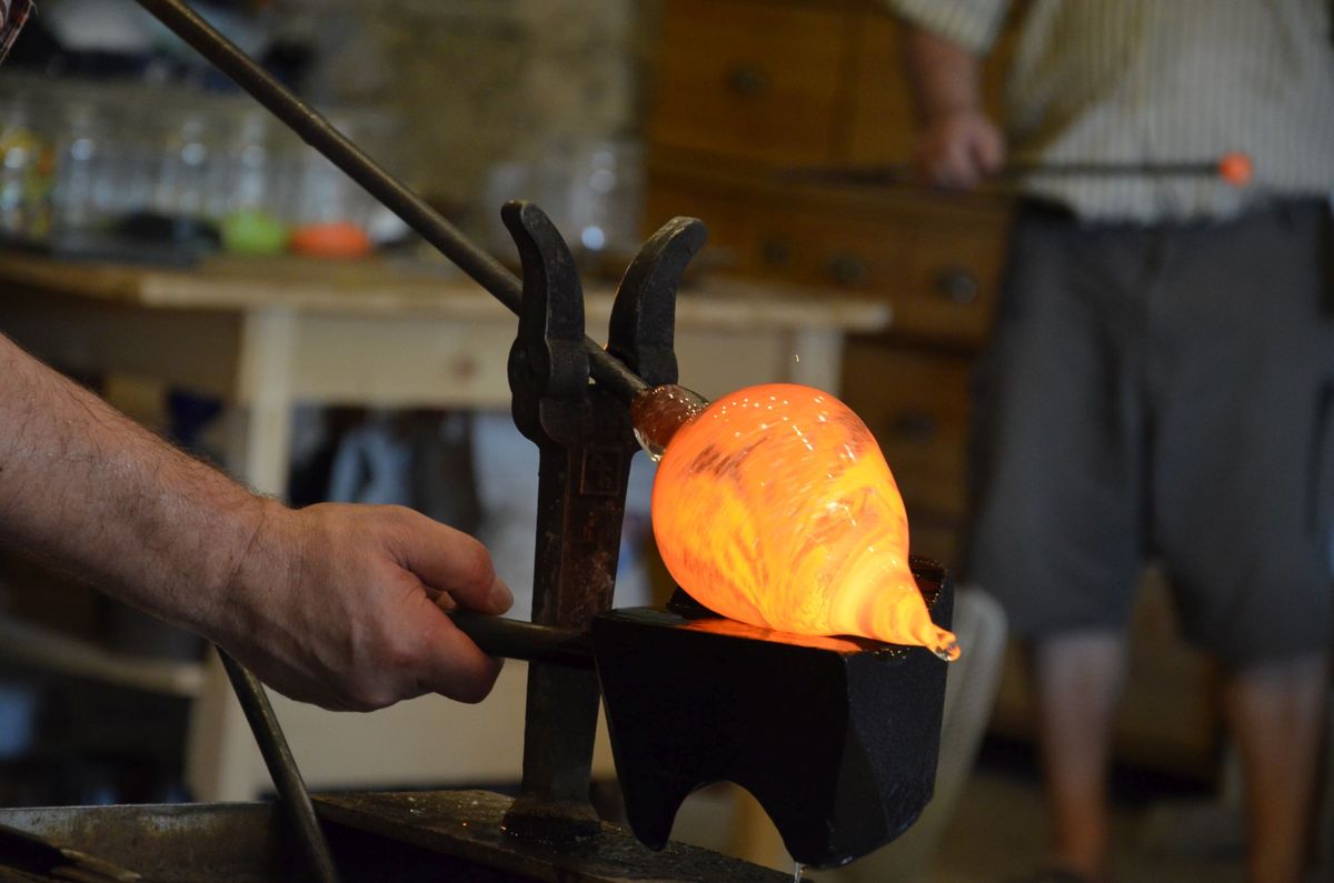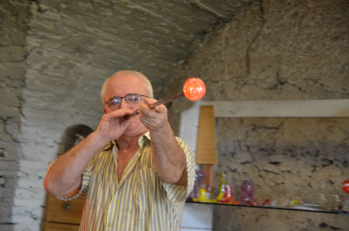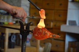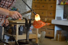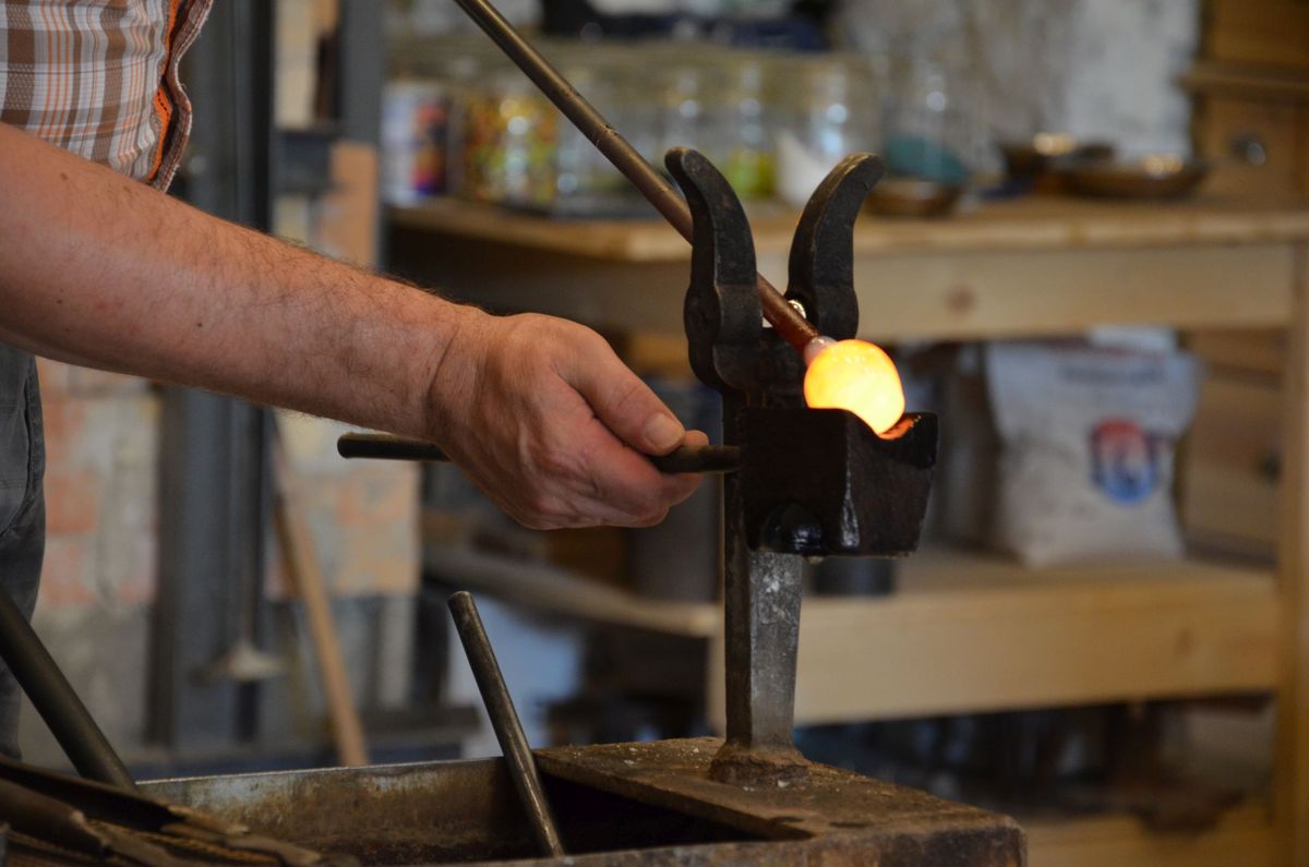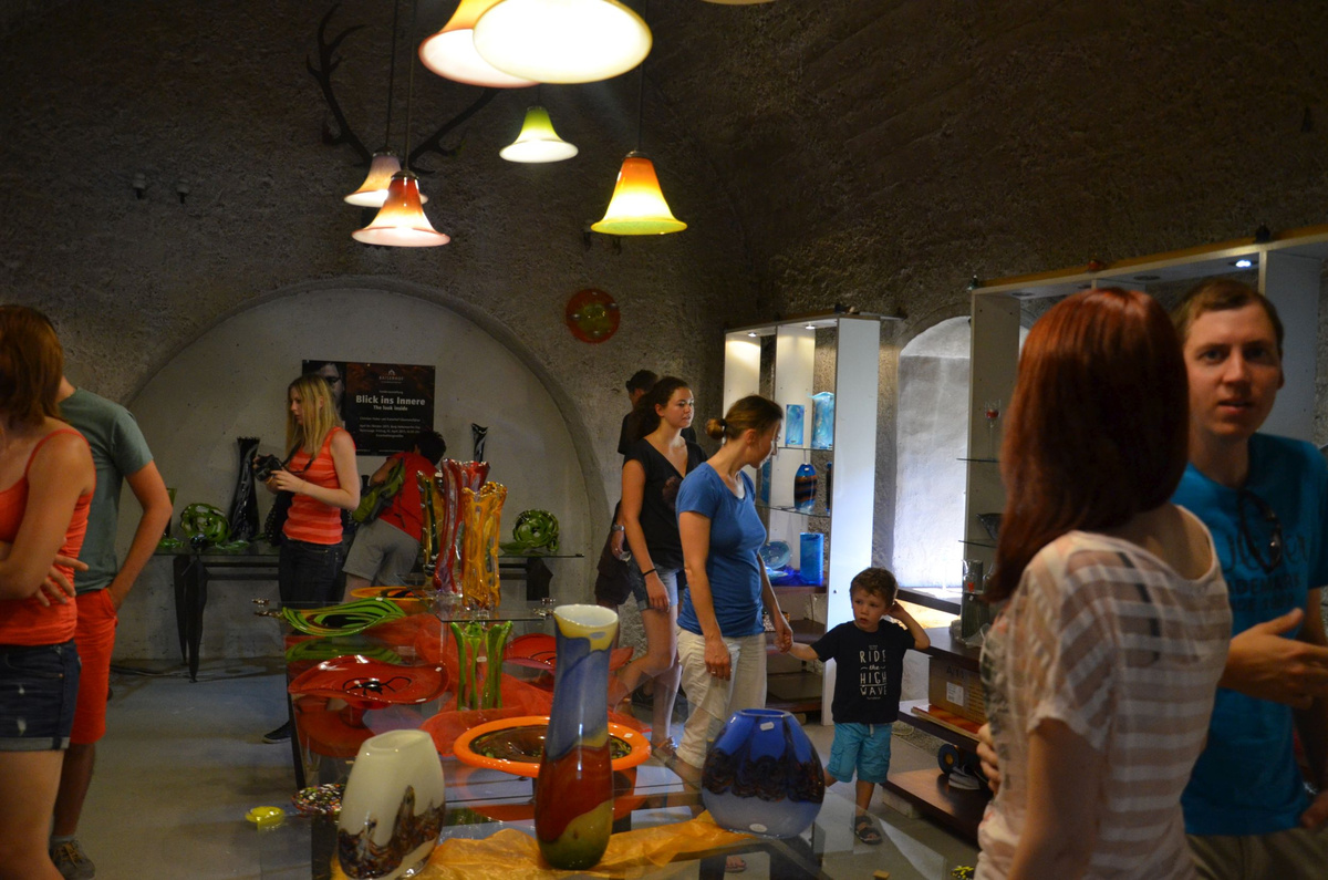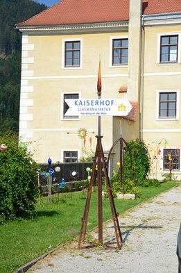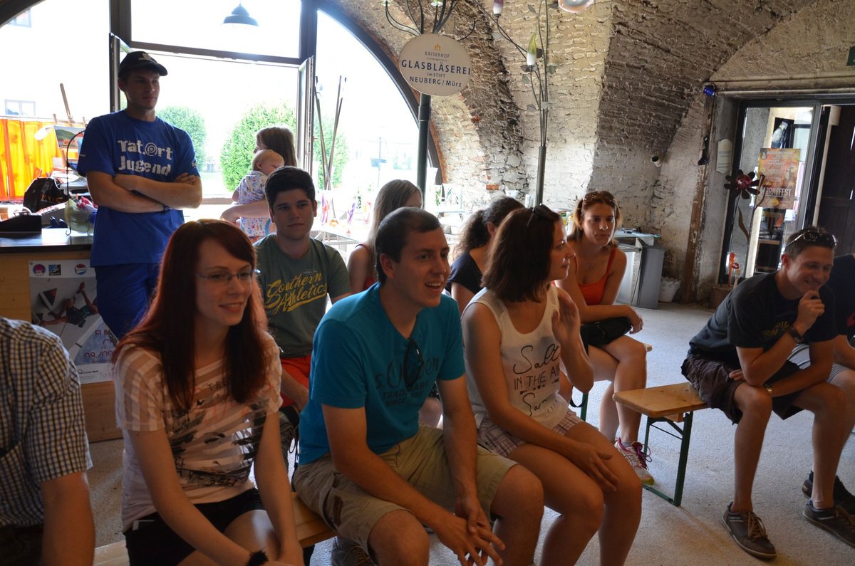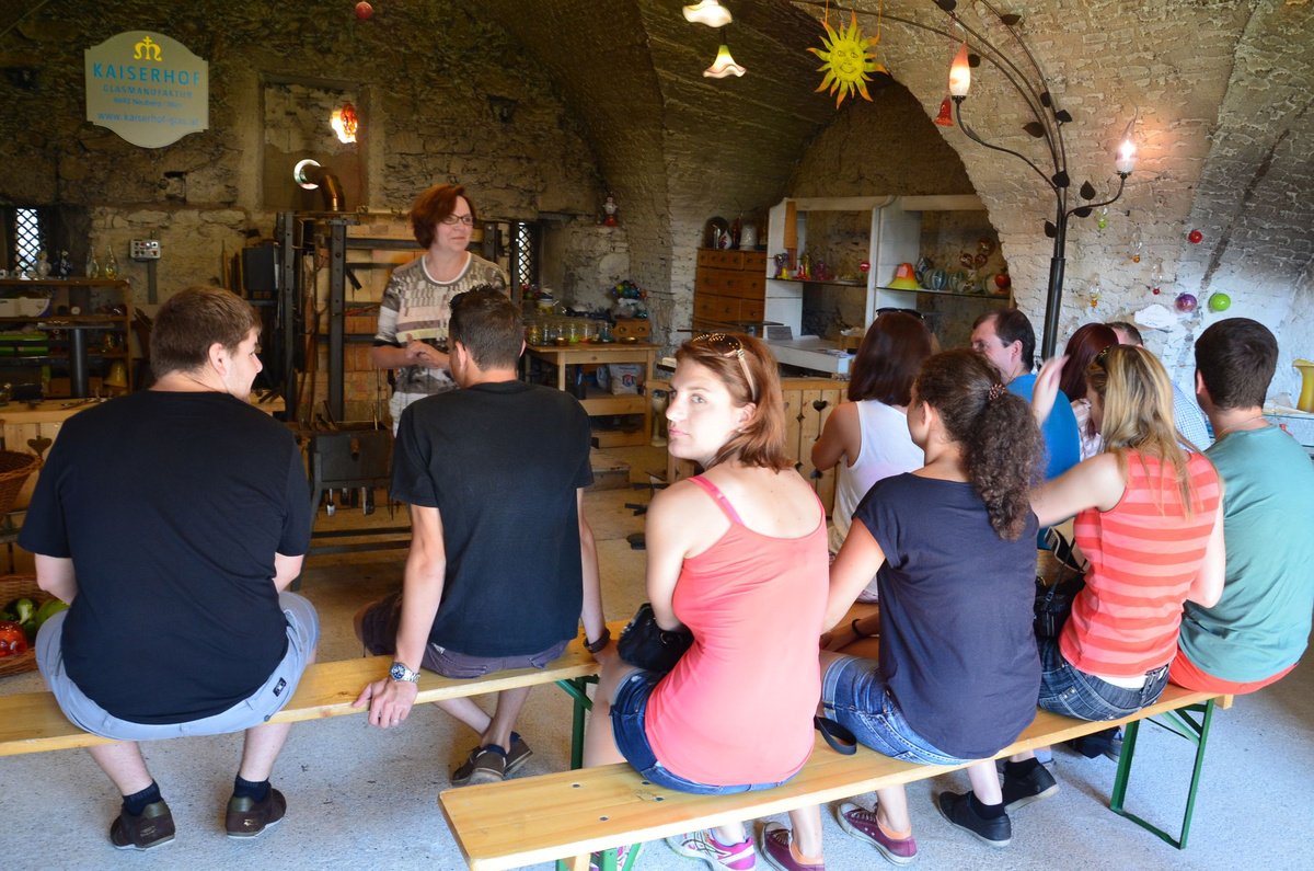 Als ersten Tagesordnungspunkt besuchten wir die Glasmanufaktur in Neuberg. Zwei Glasbläser zeigten uns dabei wie man aus den einfachen Grundstoffen Quarzsand, Kalk, Pottasche und Natriumcarbonat beeindruckende Kunstwerke, wie etwa einen Schwan oder einen Teelichthalter, zaubert.