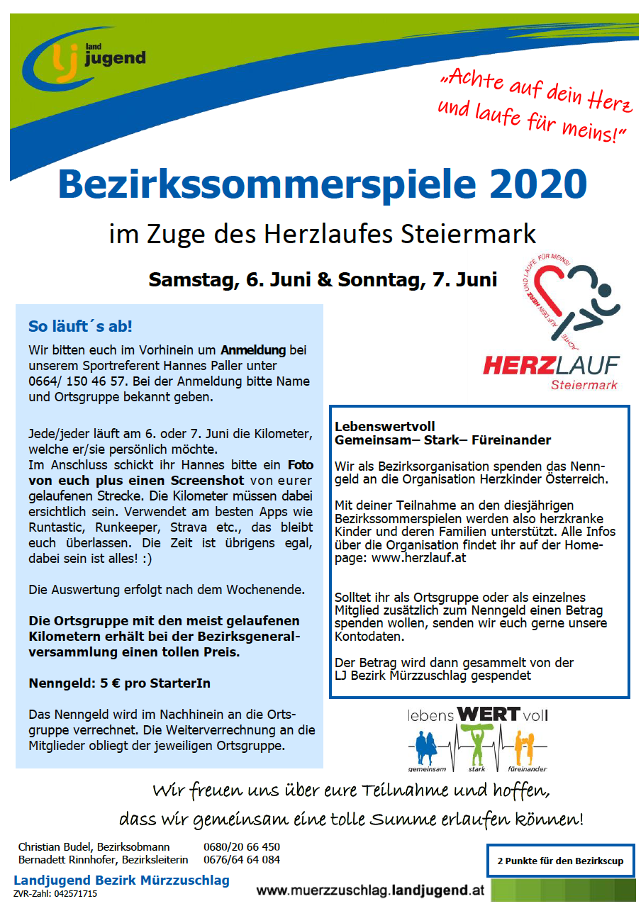 Unter diesem Motto finden heuer unsere Bezirkssommerspiele im Zuge des Herzlaufes Steiermark statt!