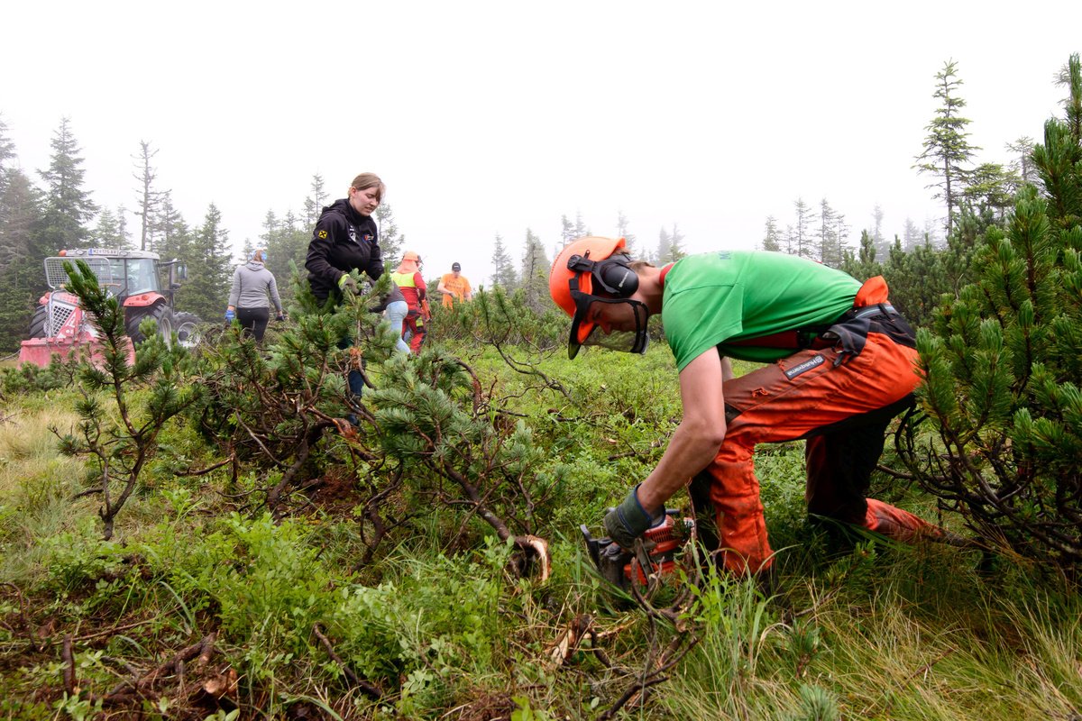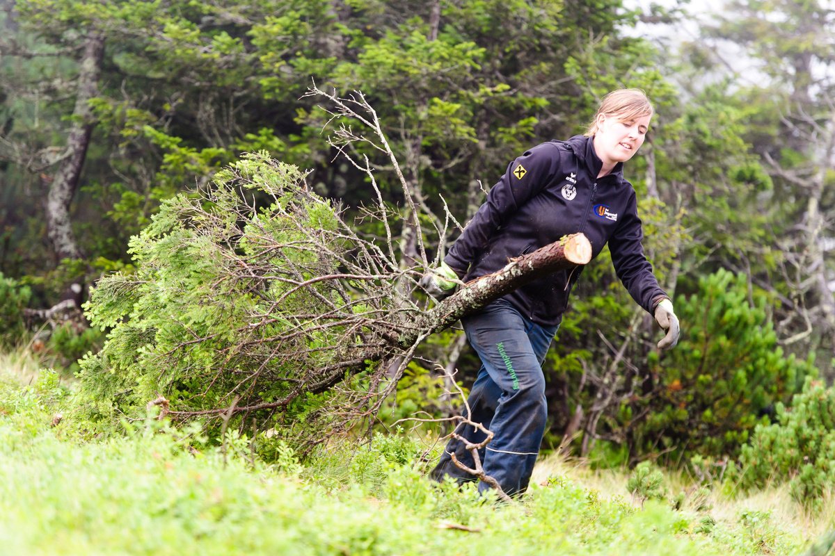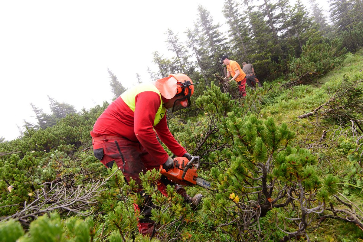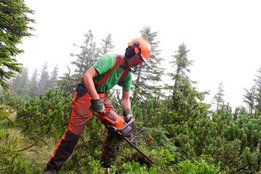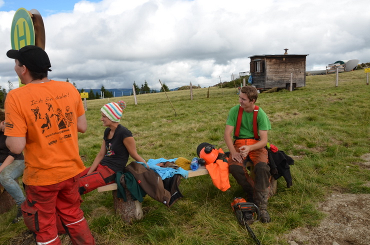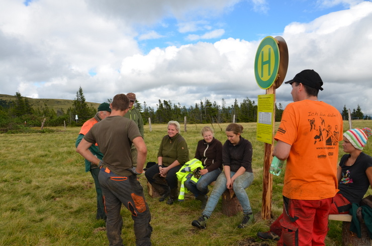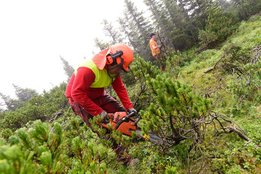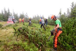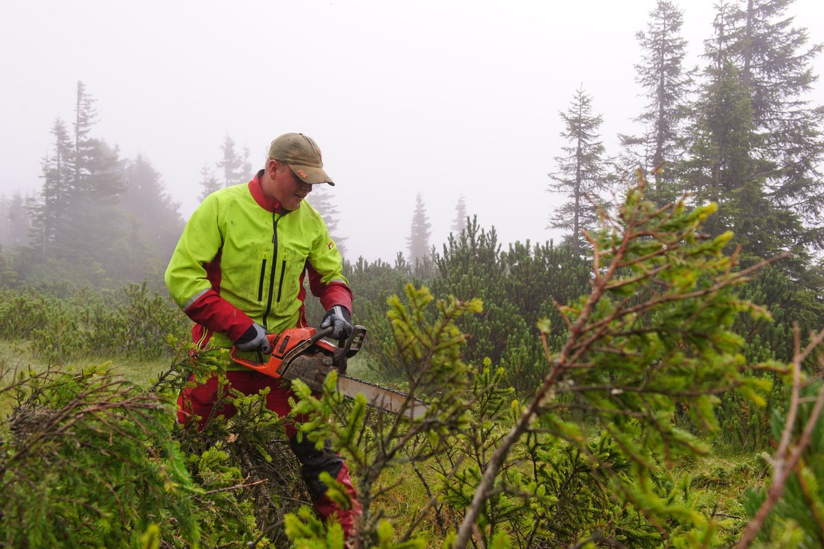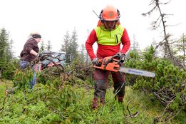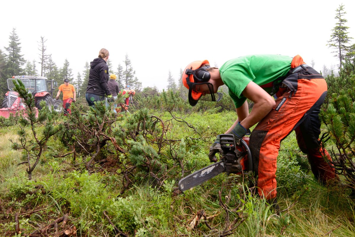Im Rahmen von Tat.Ort Jugend haben wir uns dazu entschlossen, die Österreichischen Bundesforste bei der Renaturierung des Schwarzriegelmooses zu unterstützen. Begleitend zur Errichtung des Windparkes auf der Pretul, müssen ökologische Maßnahmen gesetzt werden, um die Tier-und Pflanzenvielfalt zu erhalten. Deshalb werden auf unterschiedlichen Flächen im Umkreis des Projektgebietes Waldverbesserungsmaßnahmen gesetzt, unter anderem soll der Bewuchs von moorfeindlichen Bäumen und Sträuchern reduziert werden. Daher machten sich 15 Mitglieder, sowie die Österreichischen Bundesforste und die Bergwacht am 13. August an die Arbeit. Auf 10 Flächen wurden bis zu acht Meter hohe Fichten mit der Motorsäge umgeschnitten, händisch oder per Seilwinde aus dem Moor gezogen und mittels Traktor abtransportiert. Stellenweise wurden auch Latschen und Zwergsträucher zurückgeschnitten, um den Feuchtigkeitshaushalt des Moores besser zu regulieren. Durch diese Maßnahmen wird ein Sinken des Grundwasserspiegels und Austrocknen des Moores verhindert. Das Ökosystem wird somit langfristig stabilisiert. Um das sensible Moos nicht noch weiter zu zerstören, hatte das ohne großen Maschineneinsatz zu erfolgen und war daher mit großem Arbeitsaufwand verbunden. Gerade bei den größeren Bäumen packten die Mitglieder oft zusammen und an und zeigten das gemeinsam einiges schaffbar ist. Das Resultat nach einigen Stunden Arbeit kann sich auf alle Fälle sehen lassen. Auch wenn der Tag sehr nebelig und kühl startete, kam bis zum späten Nachmittag sogar die Sonne hervor, genau passend für einen gemeinsamen Abschluss und um die Windräder einmal von der Nähe betrachten zu können. Um gleichzeitig einen sozialen Beitrag zu leisten, soll ein erheblicher Teil der Entschädigung, welche wir für die Arbeitsstunden erhalten, dem Dr. Karl Schwer Fonds zugutekommen. Die Spendenübergabe wird anlässlich unserer Generalversammlung am 15.Oktober stattfinden. Ein Dank gilt an dieser Stelle den 15 Mitgliedern die uns an diesem Tag, trotz des eher kühlen Wetters, unterstützt haben. Ihr habt uns gezeigt, was es heißt gemeinsam anzupacken und dabei auch eine Menge Spaß zu haben.