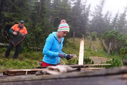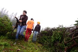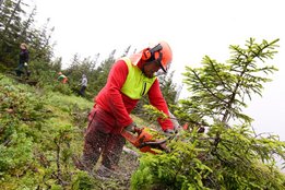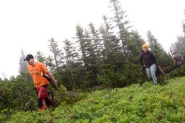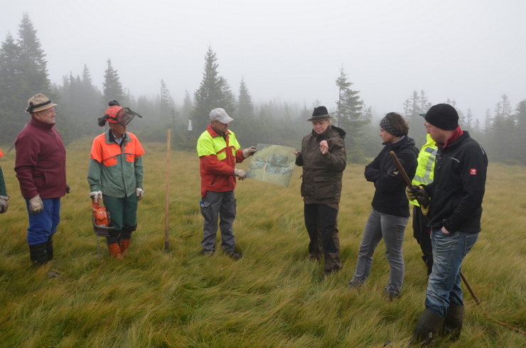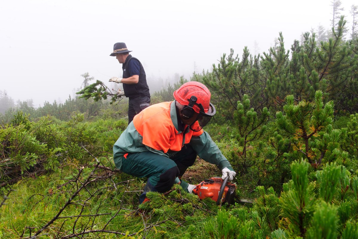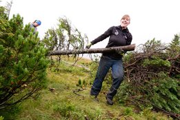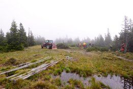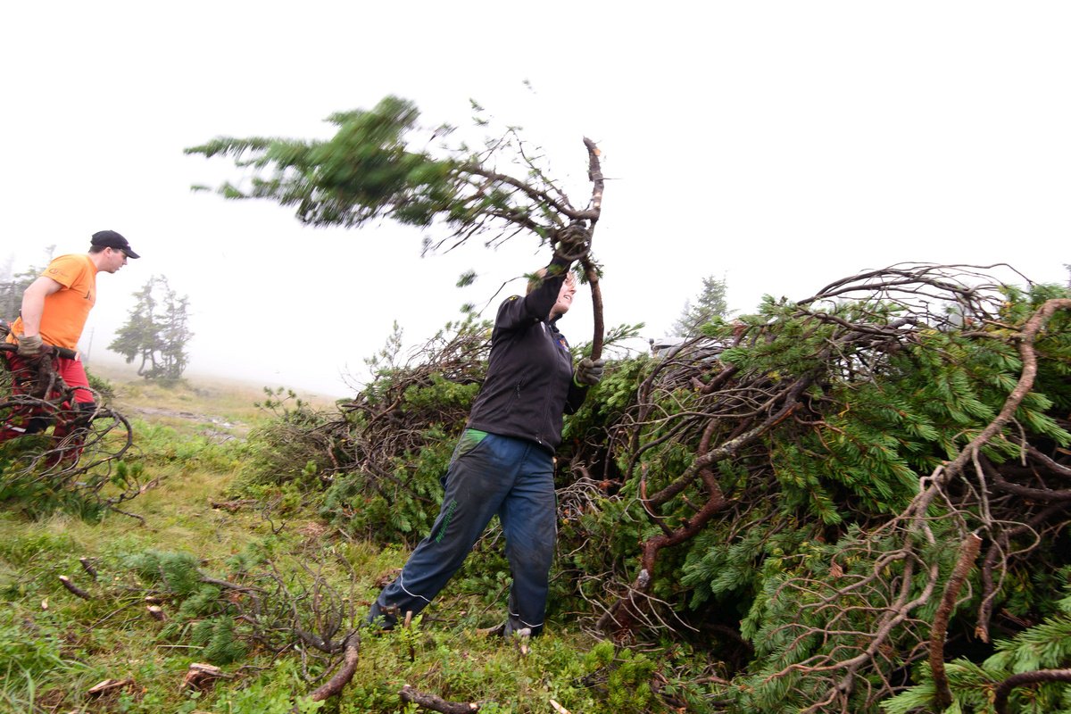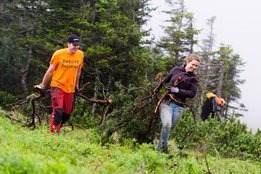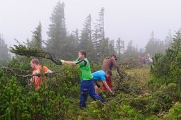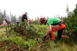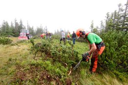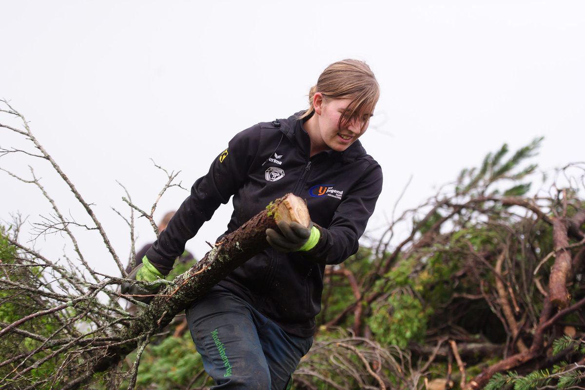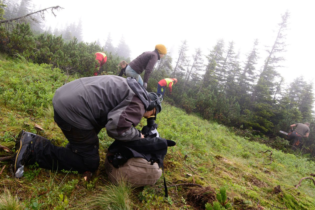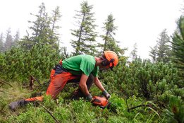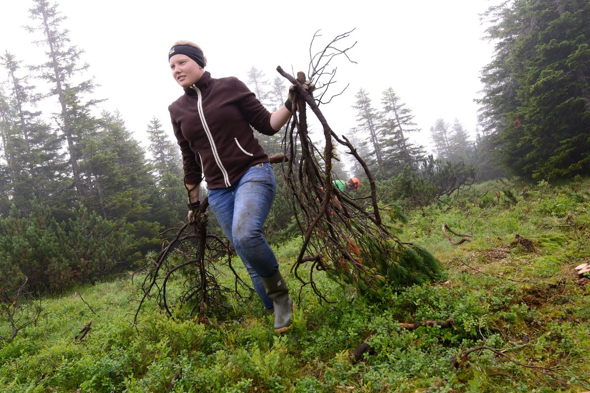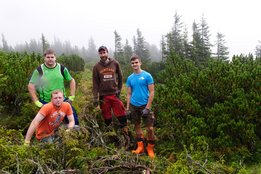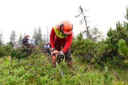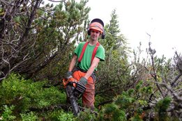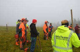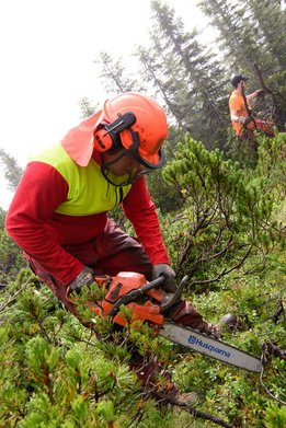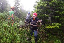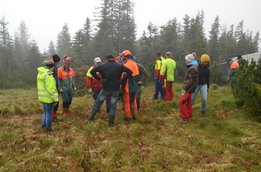 Im Rahmen von Tat.Ort Jugend haben wir uns dazu entschlossen, die Österreichischen Bundesforste bei der Renaturierung des Schwarzriegelmooses zu unterstützen. Begleitend zur Errichtung des Windparkes auf der Pretul, müssen ökologische Maßnahmen gesetzt werden, um die Tier-und Pflanzenvielfalt zu erhalten. Deshalb werden auf unterschiedlichen Flächen im Umkreis des Projektgebietes Waldverbesserungsmaßnahmen gesetzt, unter anderem soll der Bewuchs von moorfeindlichen Bäumen und Sträuchern reduziert werden. Daher machten sich 15 Mitglieder, sowie die Österreichischen Bundesforste und die Bergwacht am 13. August an die Arbeit. Auf 10 Flächen wurden bis zu acht Meter hohe Fichten mit der Motorsäge umgeschnitten, händisch oder per Seilwinde aus dem Moor gezogen und mittels Traktor abtransportiert. Stellenweise wurden auch Latschen und Zwergsträucher zurückgeschnitten, um den Feuchtigkeitshaushalt des Moores besser zu regulieren. Durch diese Maßnahmen wird ein Sinken des Grundwasserspiegels und Austrocknen des Moores verhindert. Das Ökosystem wird somit langfristig stabilisiert. Um das sensible Moos nicht noch weiter zu zerstören, hatte das ohne großen Maschineneinsatz zu erfolgen und war daher mit großem Arbeitsaufwand verbunden. Gerade bei den größeren Bäumen packten die Mitglieder oft zusammen und an und zeigten das gemeinsam einiges schaffbar ist. Das Resultat nach einigen Stunden Arbeit kann sich auf alle Fälle sehen lassen. Auch wenn der Tag sehr nebelig und kühl startete, kam bis zum späten Nachmittag sogar die Sonne hervor, genau passend für einen gemeinsamen Abschluss und um die Windräder einmal von der Nähe betrachten zu können. Um gleichzeitig einen sozialen Beitrag zu leisten, soll ein erheblicher Teil der Entschädigung, welche wir für die Arbeitsstunden erhalten, dem Dr. Karl Schwer Fonds zugutekommen. Die Spendenübergabe wird anlässlich unserer Generalversammlung am 15.Oktober stattfinden. Ein Dank gilt an dieser Stelle den 15 Mitgliedern die uns an diesem Tag, trotz des eher kühlen Wetters, unterstützt haben. Ihr habt uns gezeigt, was es heißt gemeinsam anzupacken und dabei auch eine Menge Spaß zu haben.