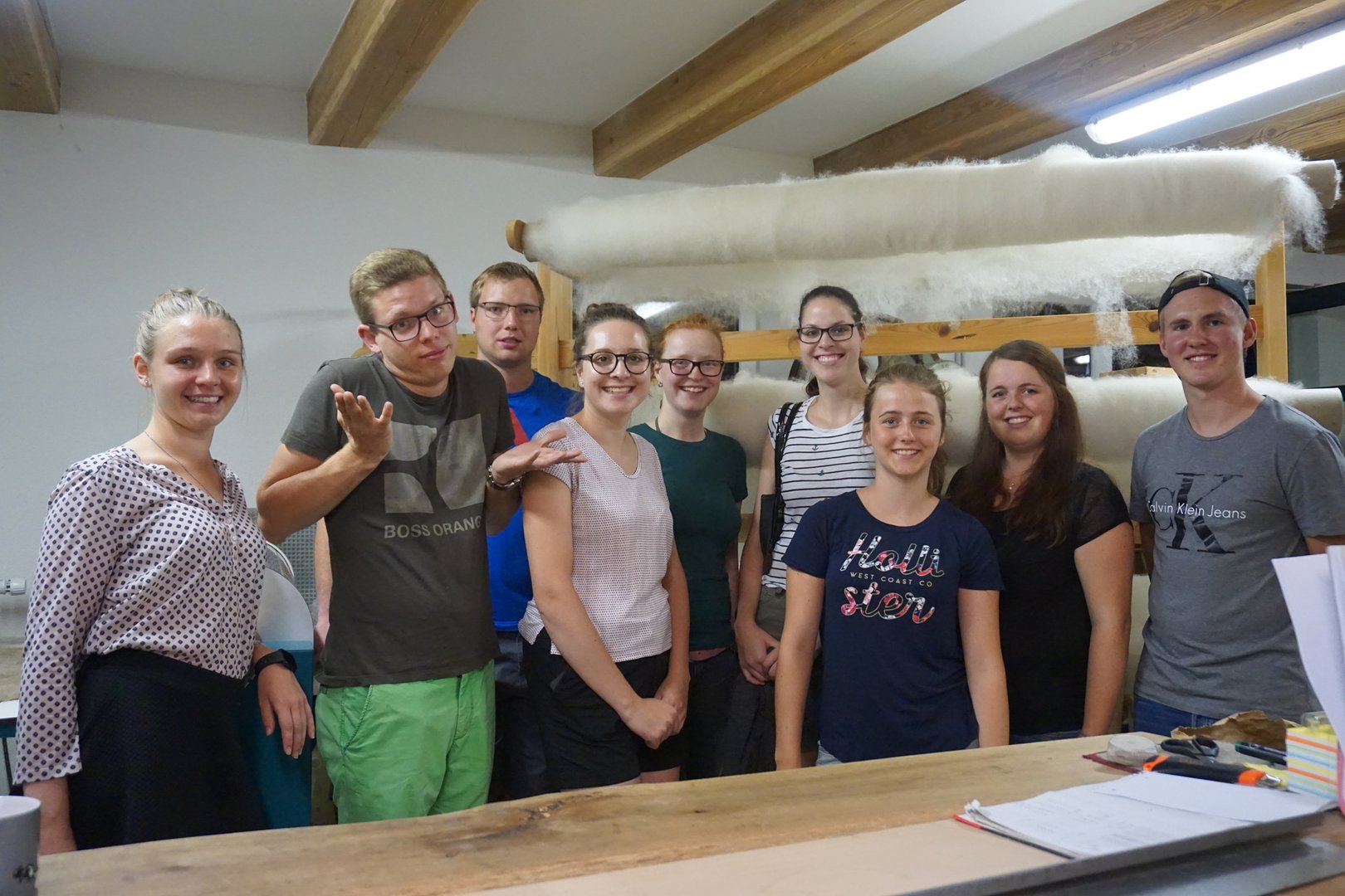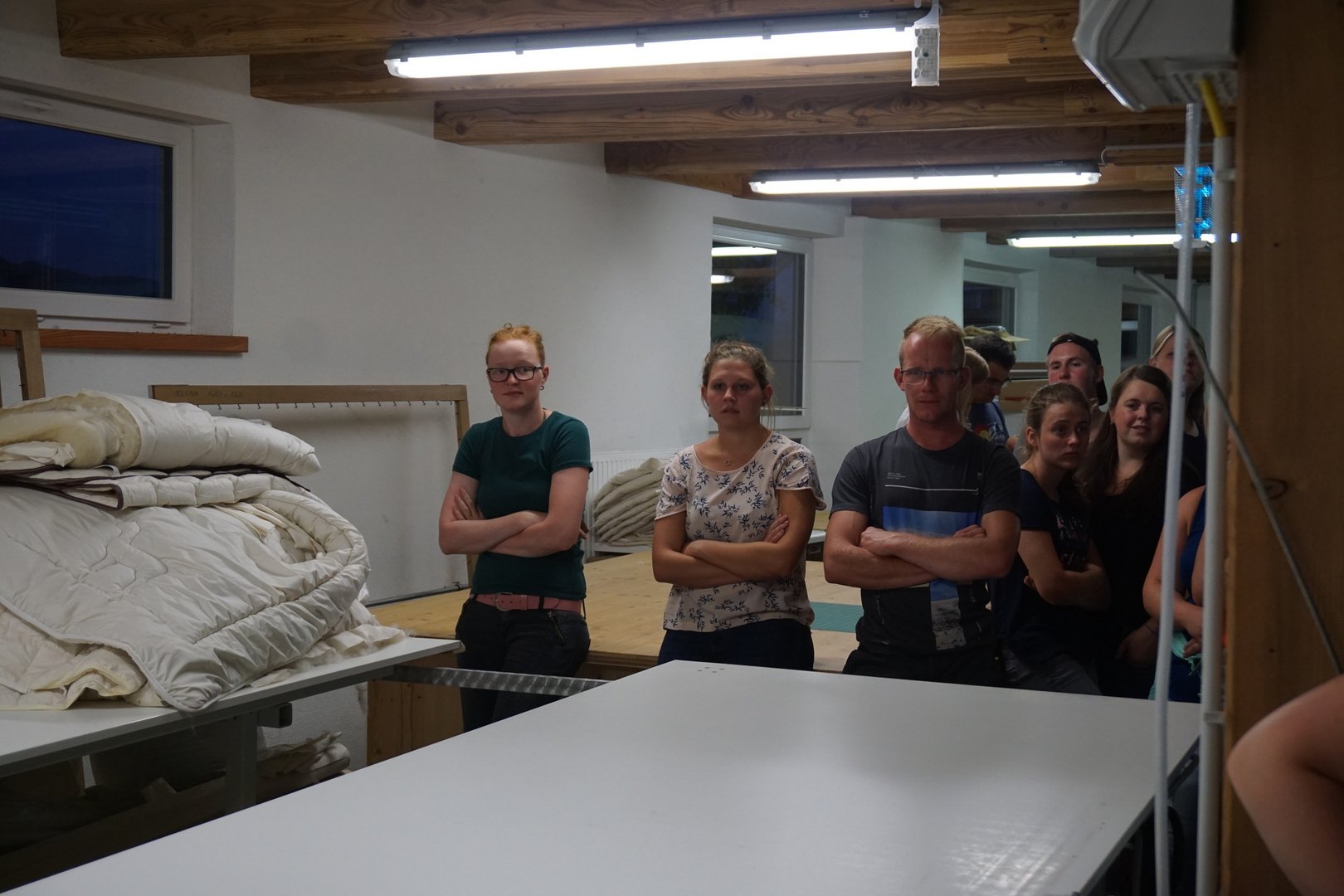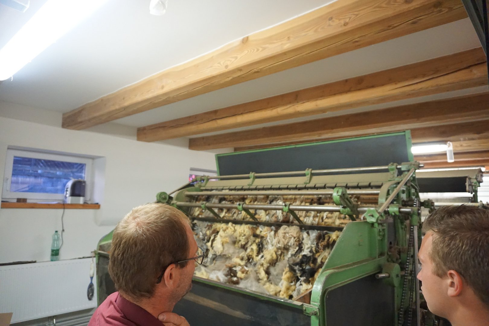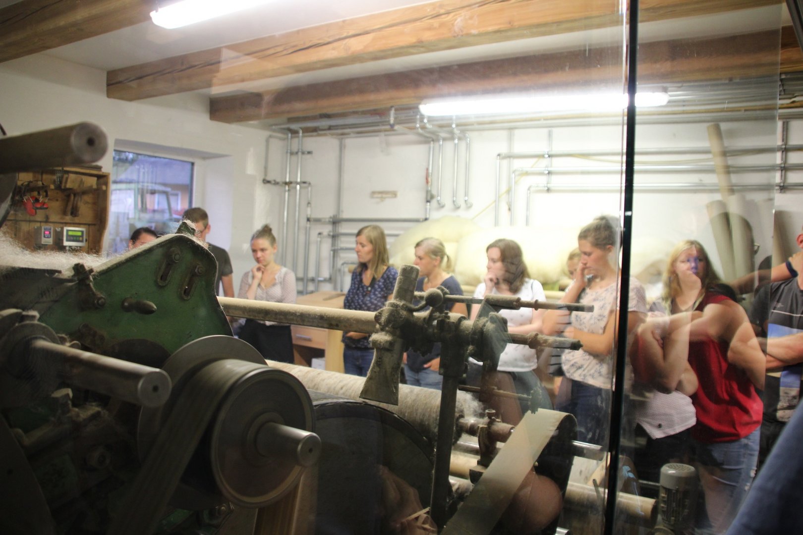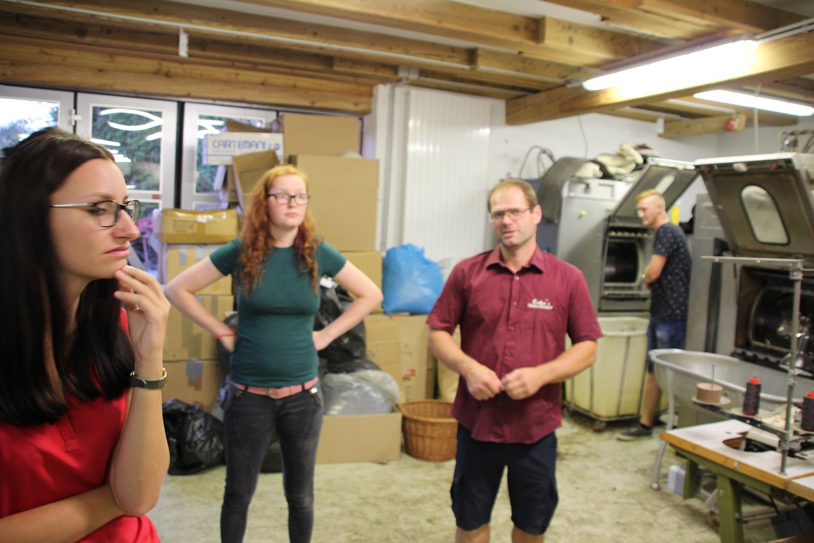 Am 21. August führte uns der 2. Regionalagrarkreis nach Mürzhofen in Erika´s Wollwerkstatt, wo wir einen tollen Einblick in die gesamte Produktion und Hofgeschichte erhalten. Da die Nachfrage, auch für andere Betriebe Wolle zu reinigen und aufzubereiten immer größer wurde, entschloss sich die Familie Schoberer die Mutterkuhhaltung aufzugeben und den Stall komplett in eine Vollverarbeitungsstätte umzubauen, wo von der Rohwolle bis hin zur Steppdecke alles an einem Ort zur Verfügungen steht. Vom Vlies bis hin zur Steppdecke, Pölster, Schuheinlagen und Hüten wird also alles auf dem Betrieb produziert. Neben der Produktion züchtet der Betrieb auch selbst Alpakas und Schafe.