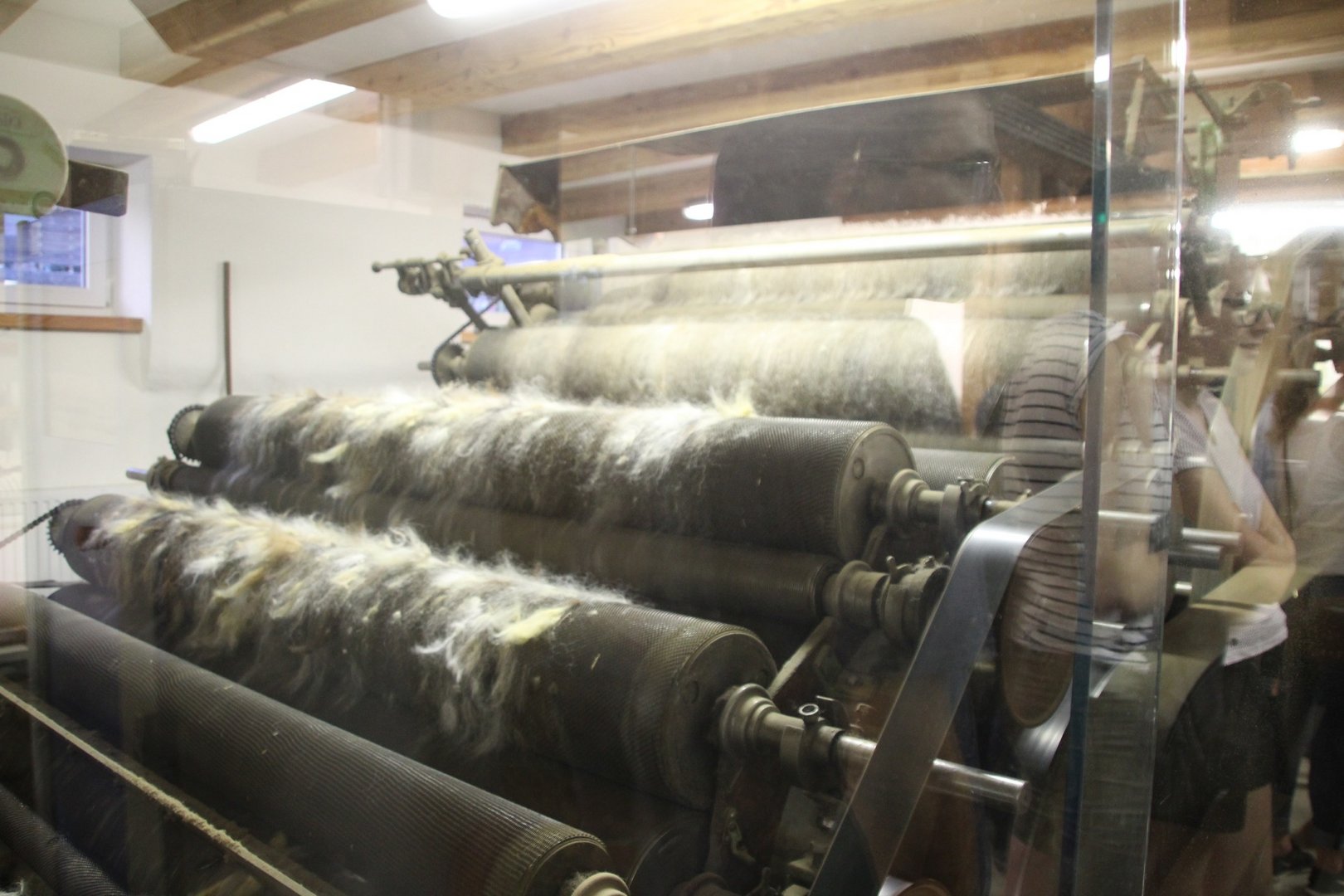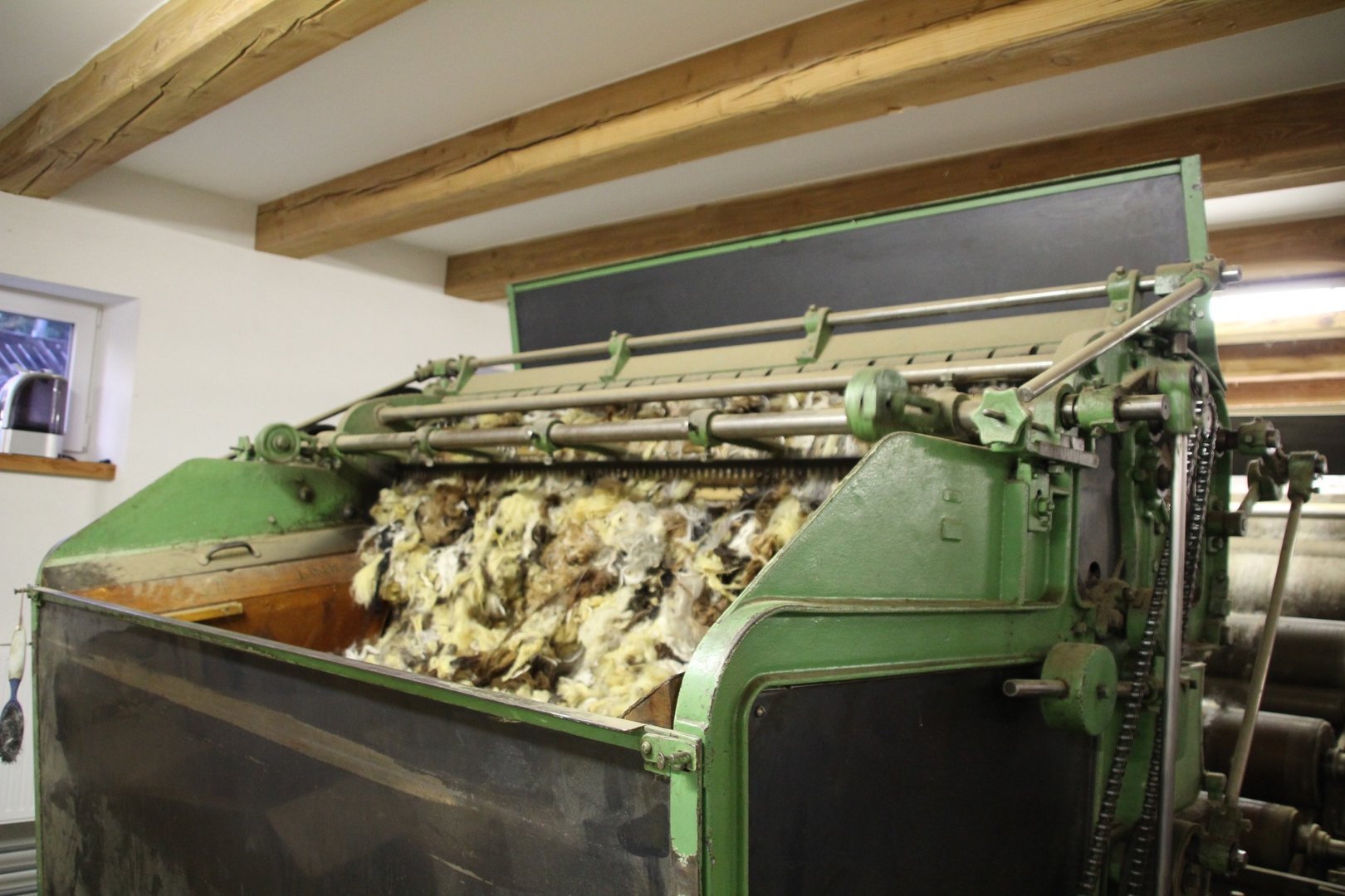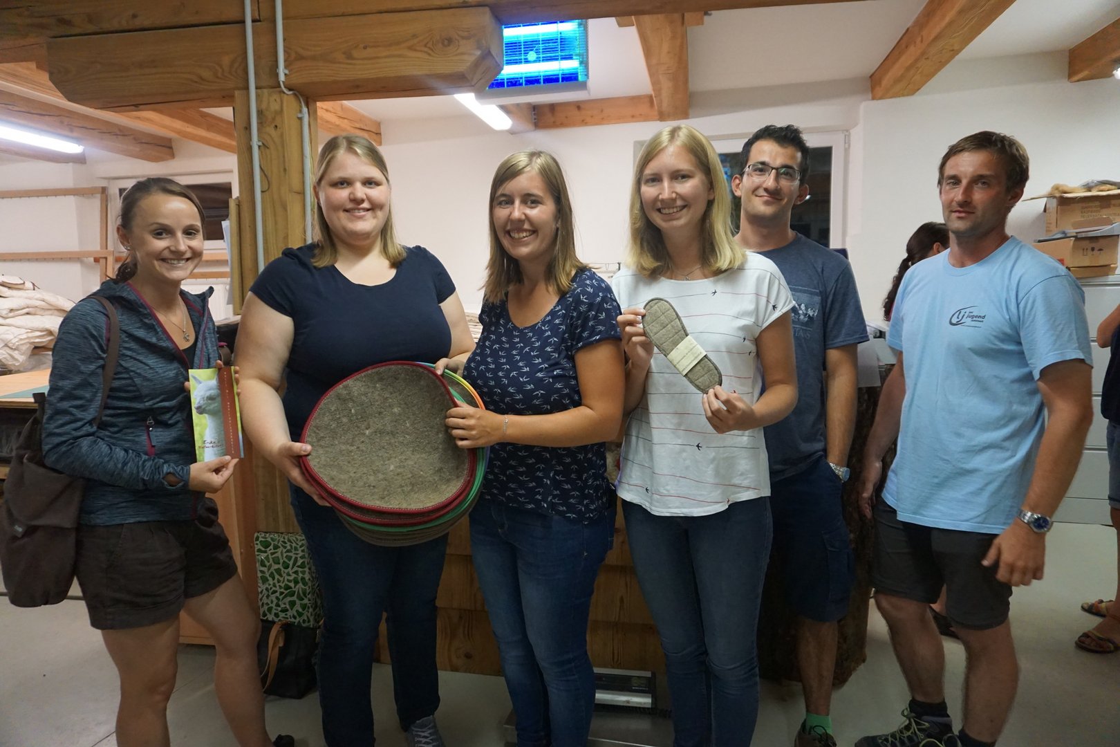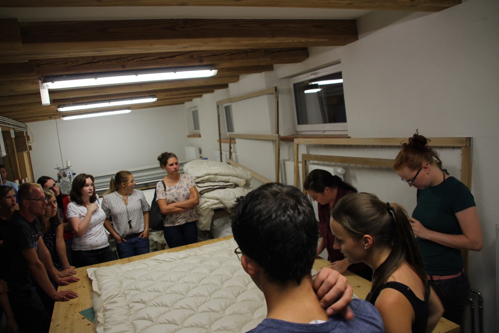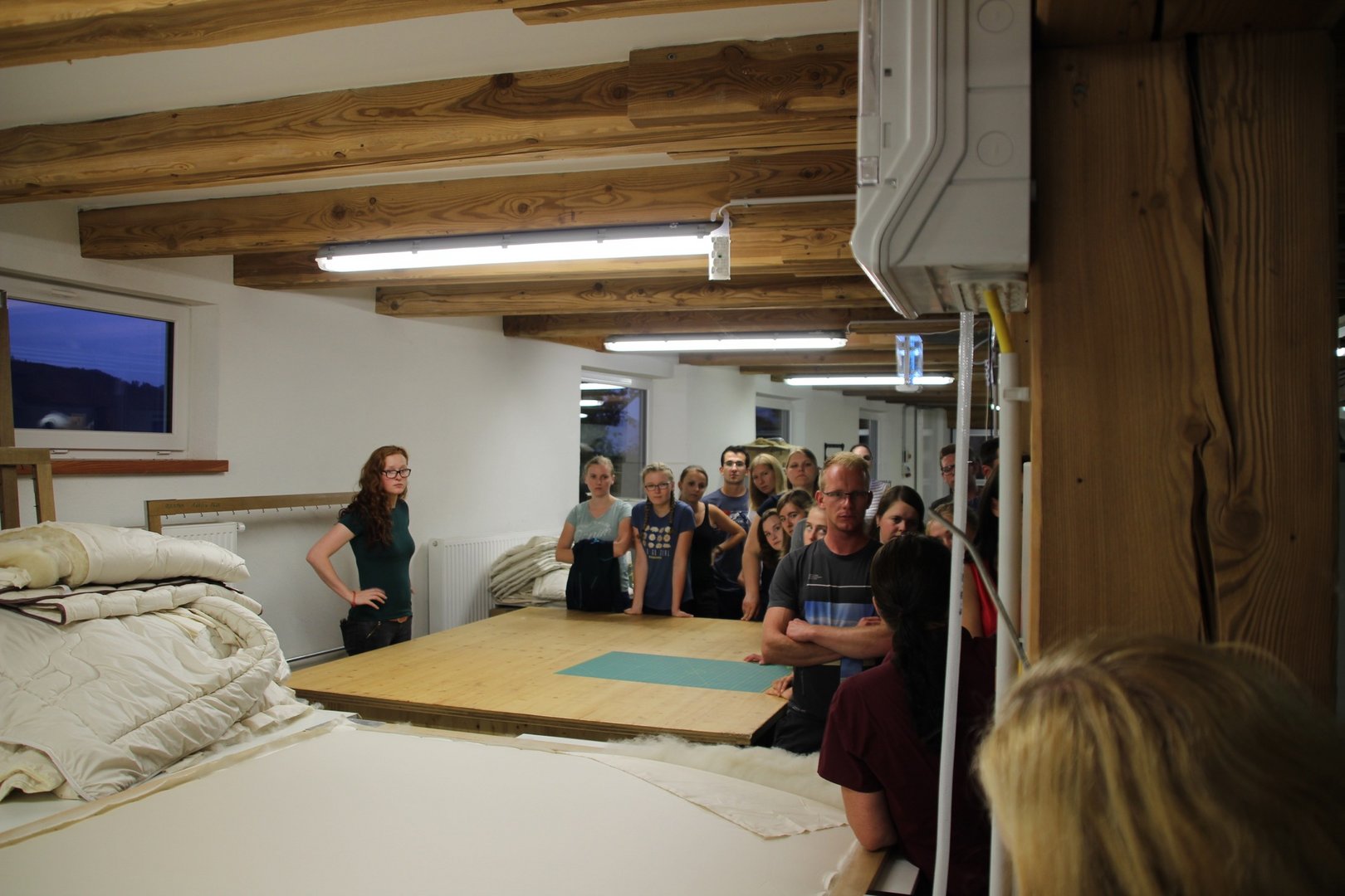Am 21. August führte uns der 2. Regionalagrarkreis nach Mürzhofen in Erika´s Wollwerkstatt, wo wir einen tollen Einblick in die gesamte Produktion und Hofgeschichte erhalten. Da die Nachfrage, auch für andere Betriebe Wolle zu reinigen und aufzubereiten immer größer wurde, entschloss sich die Familie Schoberer die Mutterkuhhaltung aufzugeben und den Stall komplett in eine Vollverarbeitungsstätte umzubauen, wo von der Rohwolle bis hin zur Steppdecke alles an einem Ort zur Verfügungen steht. Vom Vlies bis hin zur Steppdecke, Pölster, Schuheinlagen und Hüten wird also alles auf dem Betrieb produziert. Neben der Produktion züchtet der Betrieb auch selbst Alpakas und Schafe.