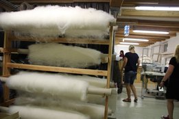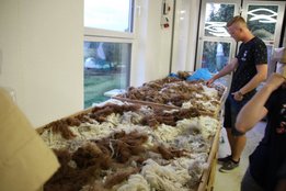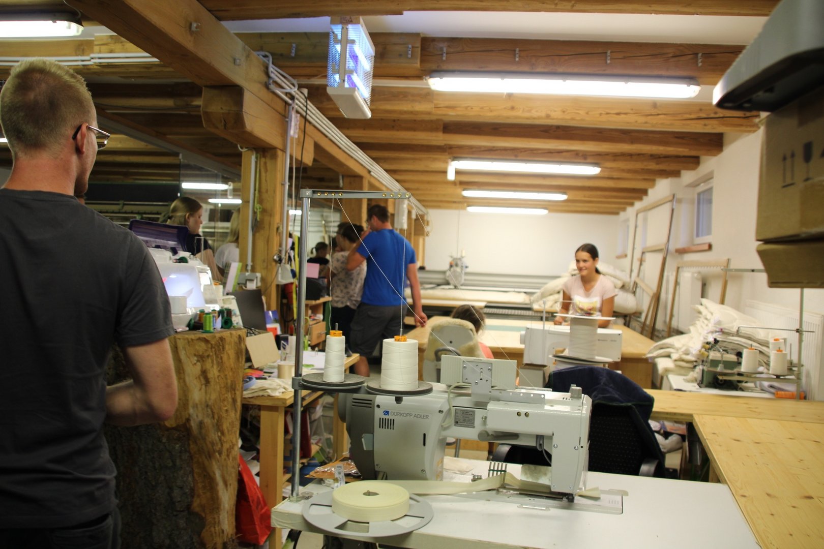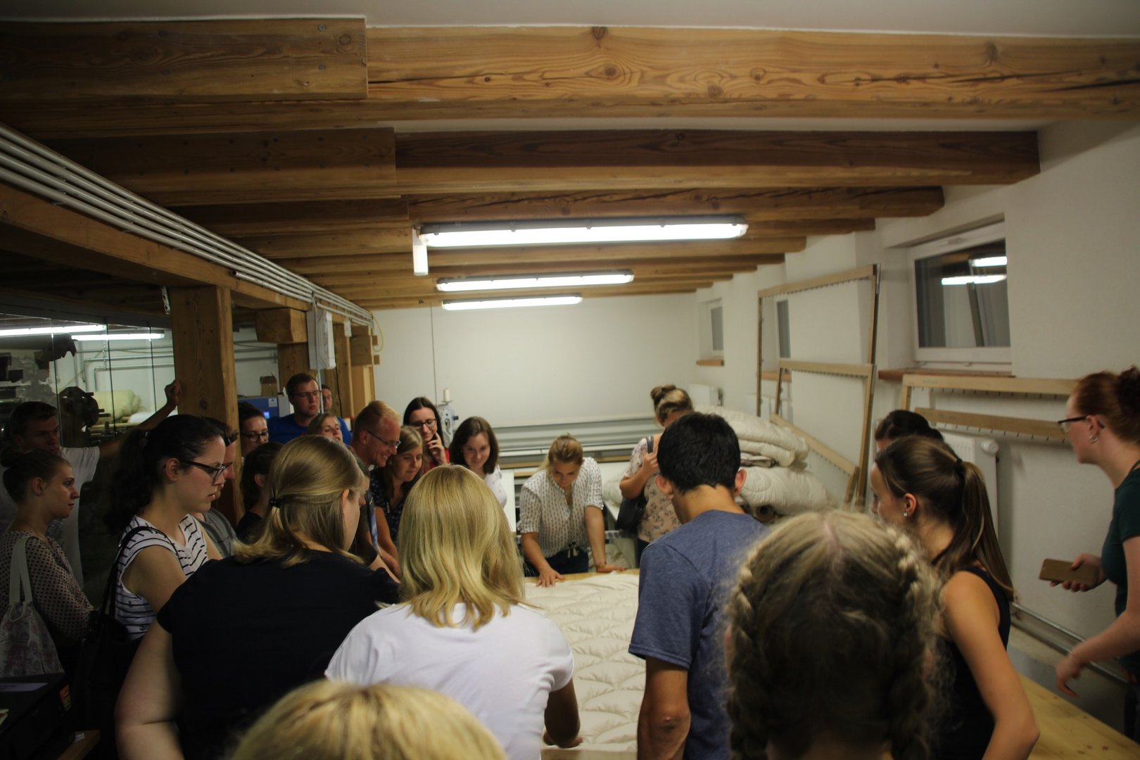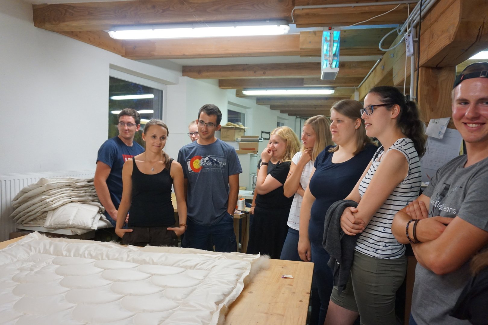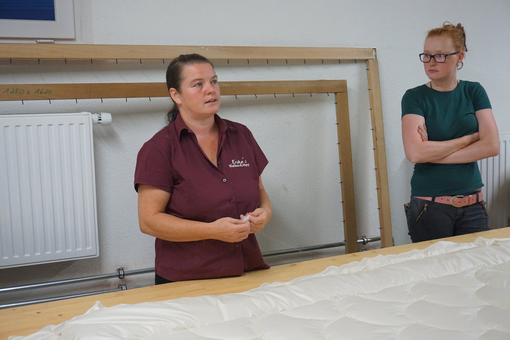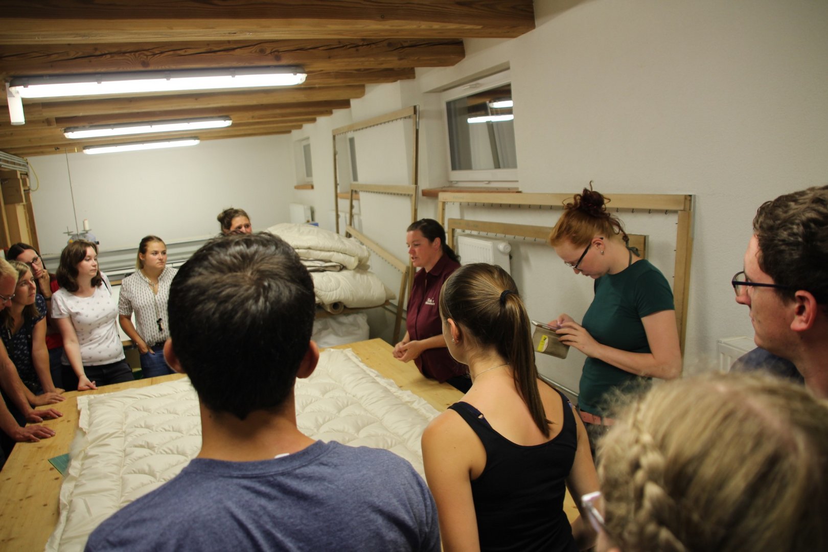 Am 21. August führte uns der 2. Regionalagrarkreis nach Mürzhofen in Erika´s Wollwerkstatt, wo wir einen tollen Einblick in die gesamte Produktion und Hofgeschichte erhalten. Da die Nachfrage, auch für andere Betriebe Wolle zu reinigen und aufzubereiten immer größer wurde, entschloss sich die Familie Schoberer die Mutterkuhhaltung aufzugeben und den Stall komplett in eine Vollverarbeitungsstätte umzubauen, wo von der Rohwolle bis hin zur Steppdecke alles an einem Ort zur Verfügungen steht. Vom Vlies bis hin zur Steppdecke, Pölster, Schuheinlagen und Hüten wird also alles auf dem Betrieb produziert. Neben der Produktion züchtet der Betrieb auch selbst Alpakas und Schafe.