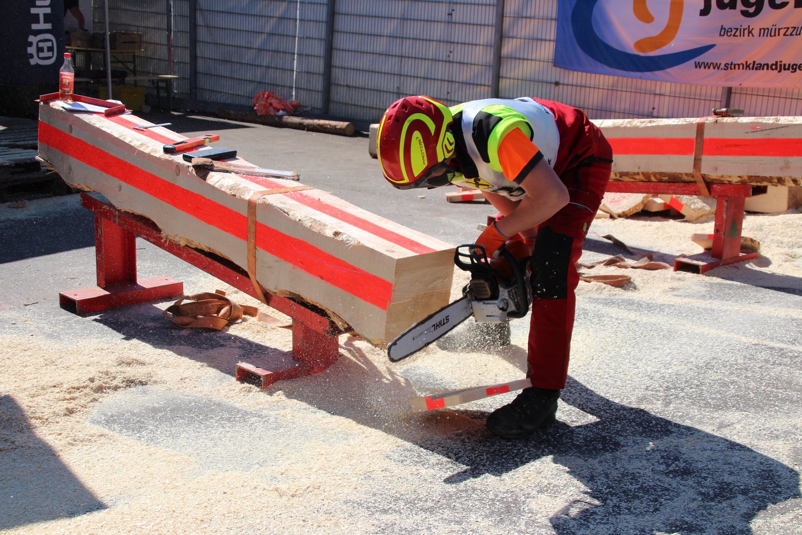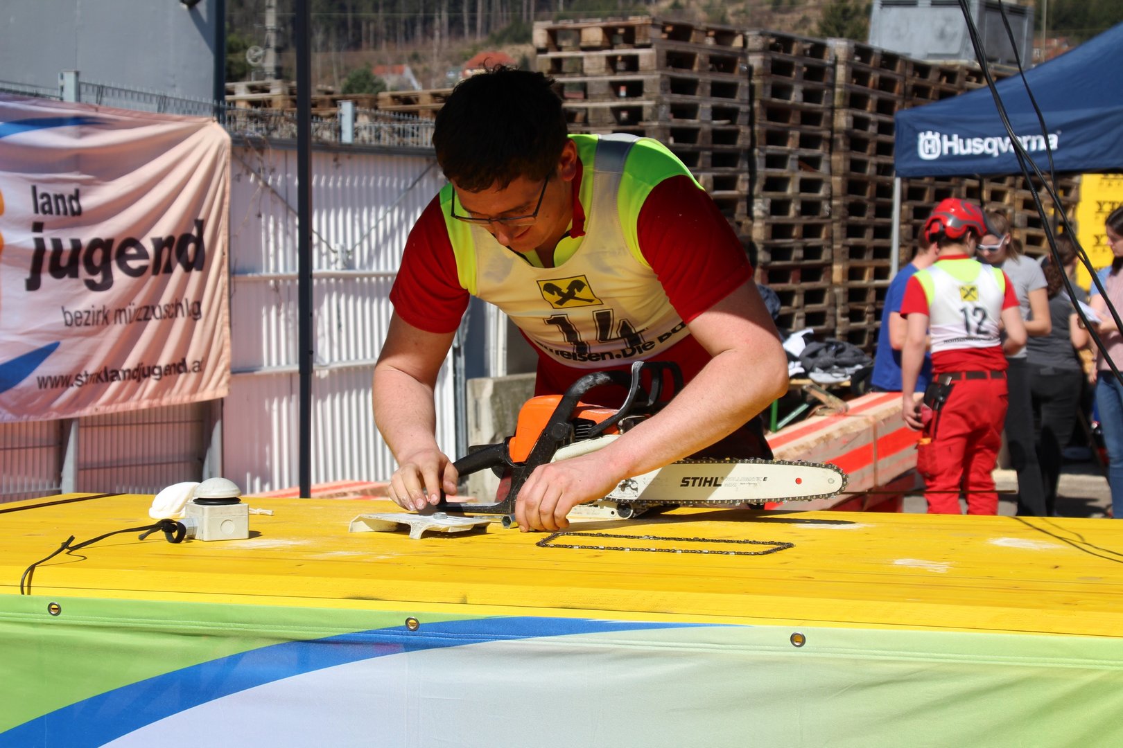 An die Motorsägen, fertig, los! Diesem Motto folgten am 31. März zahlreiche Landjugendmitglieder um beim diesjährigen Forstbewerb der Landjugendbezirke Mürzzuschlag, Bruck/Mur und Leoben dabei zu sein. Im Rahmen des Landforstkirtags in Kapfenberg kämpften die Mädels und Burschen in den Disziplinen Präzisions-, Fallkerb- und Kombinationsschnitt, Kettenwechsel, sowie Durchhacken und Zielhacken um den Sieg. Am Programm standen spannende Bewerbe, die bei den Teilnehmern am Ende für sehr knappe Ergebnisse sorgten. Bei den Burschen I konnte sich Florian Grassauer aus dem Bezirk Bruck/Mur den Sieg holen. Den zweiten Platz belegte Hannes Gastgeber (OG Langenwang) und dritter wurde Martin Krenn (BZ Bruck/Mur). Spannend wurde es bei der Siegerehrung der Burschen II. Der dritte Platz ging hier an Lukas Steer (Bezirk Bruck/Mur). Christian Rinnhofer (OG Langenwang) konnte sich den hervorragenden zweiten Platz sichern und die Goldmedaille ging dieses Mal wieder an Johannes Meisenbichler (Bezirk Bruck/Mur). Auch dieses Jahr waren beim Bewerb wieder einige Mädels vertreten und konnten tolle Leistungen erbringen! Gratulieren dürfen wir Holzer Victoria (OG AKN) zum dritten Platz, Christina Falzberger (Bezirk Leoben) zum 2. Rang und vor allem Barbara Rinnhofer (OG Langenwang), die sich durchsetzen konnte und ganz oben am Treppchen stand. Die genaue Ergebnisliste findet ihr im Anschluss an den Bericht. Herzliche Gratulation an alle Teilnehmer zu ihren großartigen Leistungen! Zum Abschluss noch ein kleiner Terminausblick: am 4. Mai findet der Landesforstentscheid statt! Hier ist die Freude besonders groß, da wir die besten Forstler bei uns im Bezirk in der FAST Pichl begrüßen dürfen!