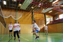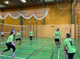 Nach Auslosung der Teams, die gegeneinander spielen, stand dem Turnier nichts mehr im Wege und das Spiel konnte beginnen. Mit vollem Körpereinsatz und purer Begeisterung schossen die Spieler den Ball übers Netz und kämpften um die Punkte.