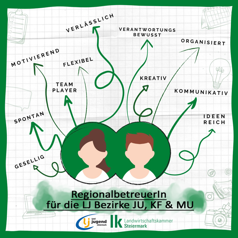 Die Landwirtschaftskammer Steiermark ist ein serviceorientiertes, traditionsreiches Dienstleistungsunternehmen für die steirische Land- und Forstwirtschaft. Wir verstärken unser Team und suchen ab sofort einen/eine Landjugend Regionalbetreuer/In für die Bezirke Murau und Murtal (Teilzeit im Ausmaß von 20 Wochenstunden)!